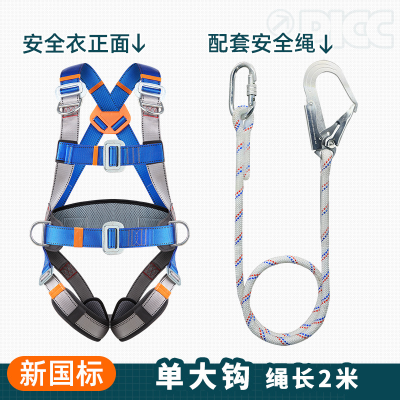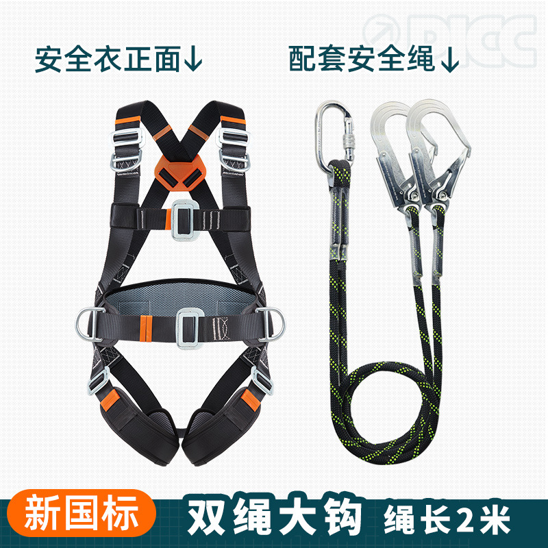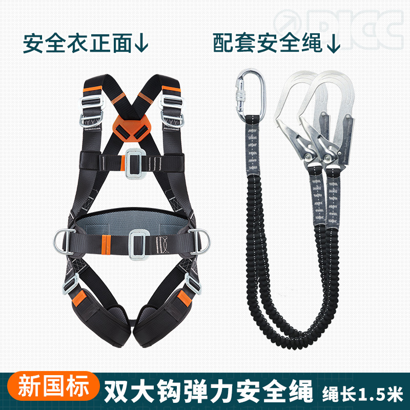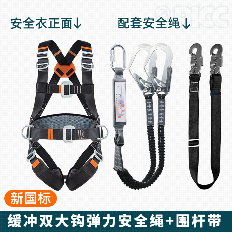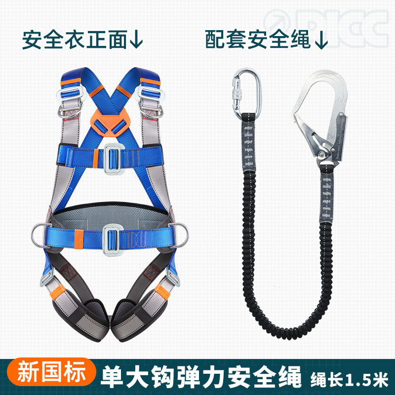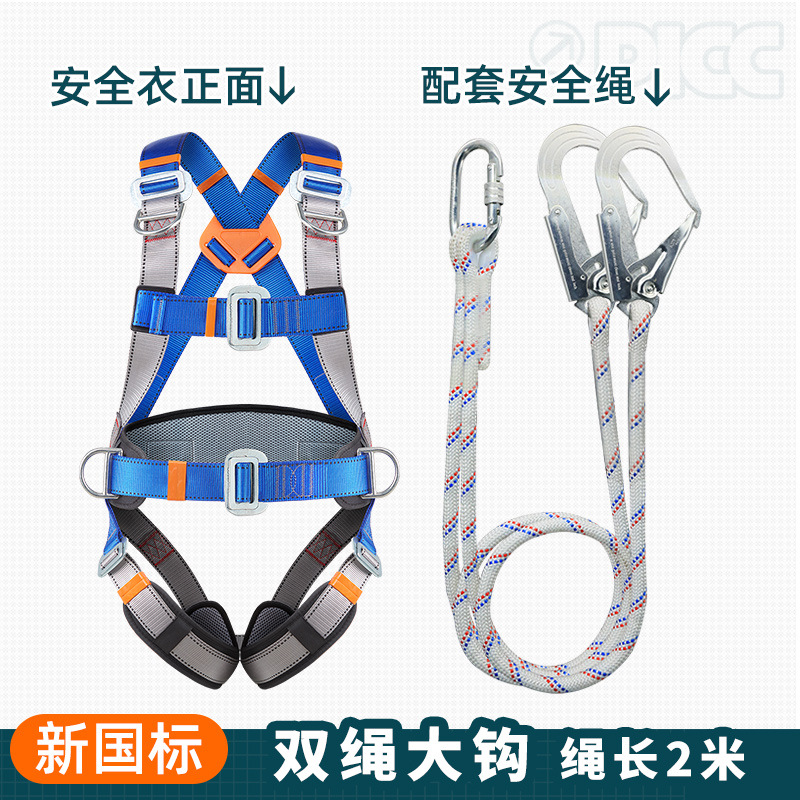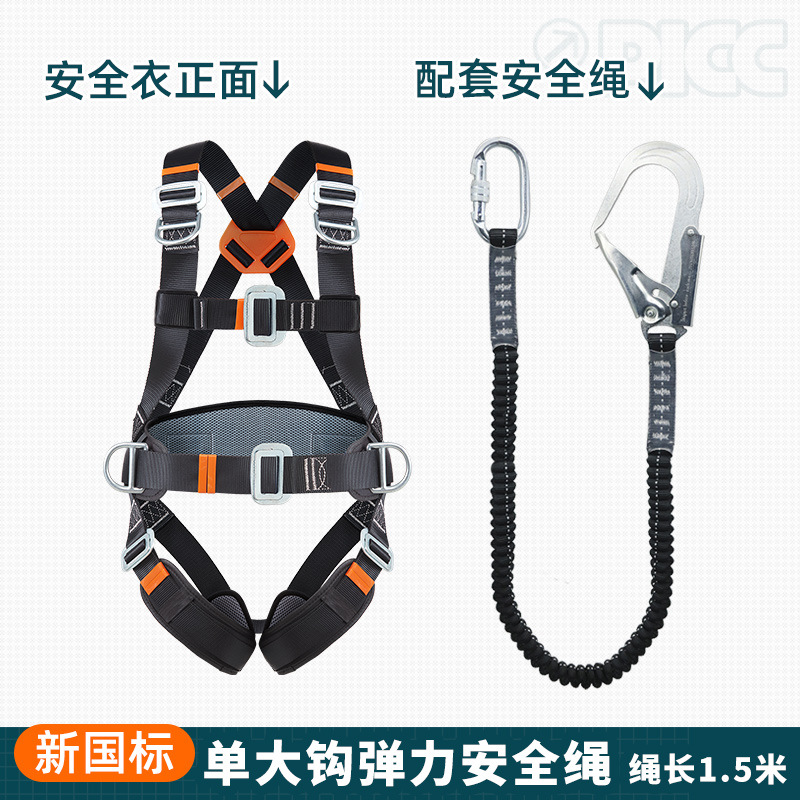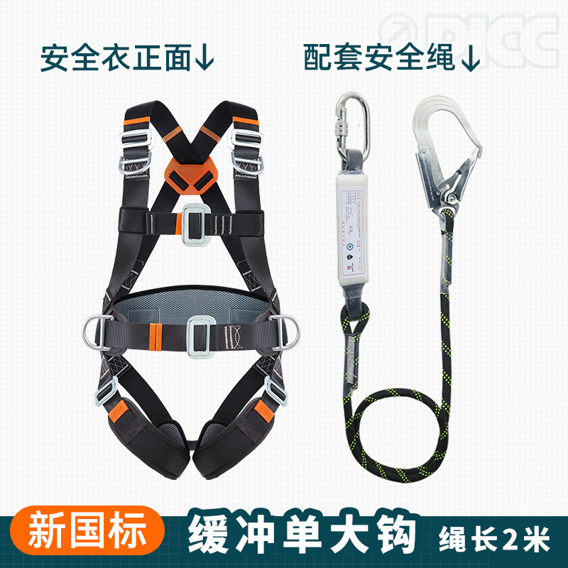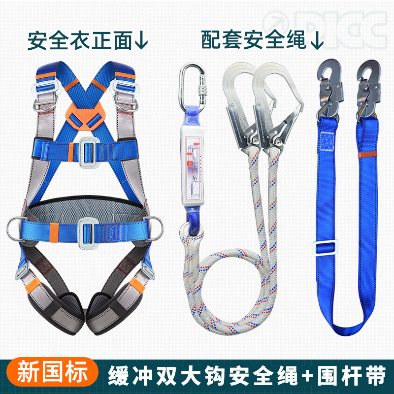 새로운 국가 표준 전신 5 점 안전 벨트 이중 대형 후크 버퍼 백 오버 검사 항공 작업을위한 낙하 방지 안전 벨트스토어 가기