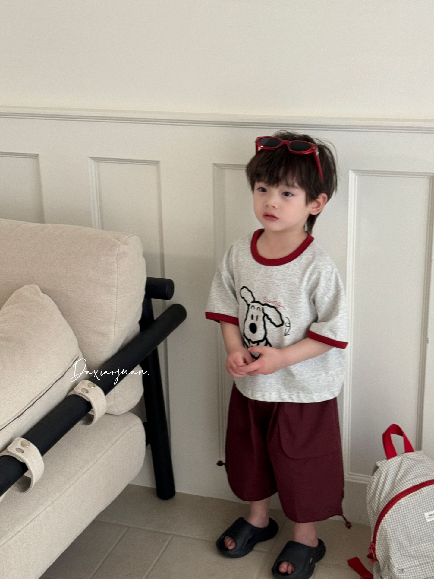 스팟 사이즈 롤 25 여름 소년 강아지 프린트 티셔츠 반팔 탑 레드 카고 반바지 한국 스타일 슈트스토어 가기