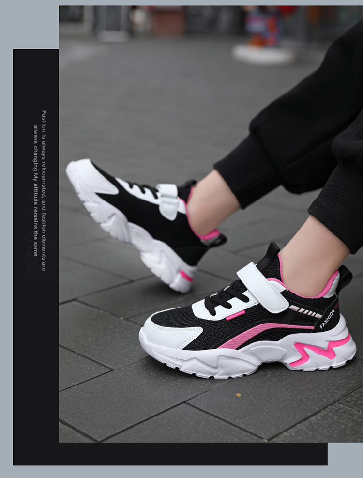 PLUS 가을 어린이 신발, 여아 운동화, 방수, 미끄럼 방지, 통기성 메쉬 벨크로, 중대형 어린이 및 소년 운동화