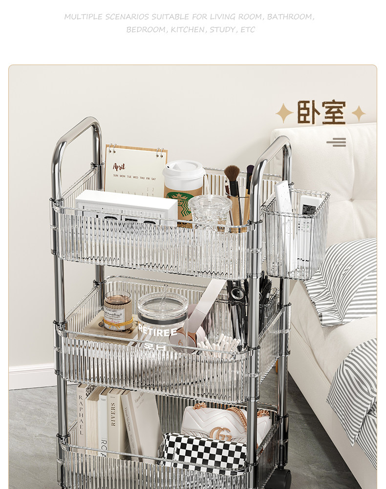 아크릴 책가방 수납랙, 책을 책상 아래에 넣을 수 있는 소형 트롤리, 다층 수납랙, 이동식, 공간 절약형스토어 가기