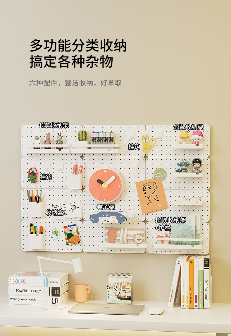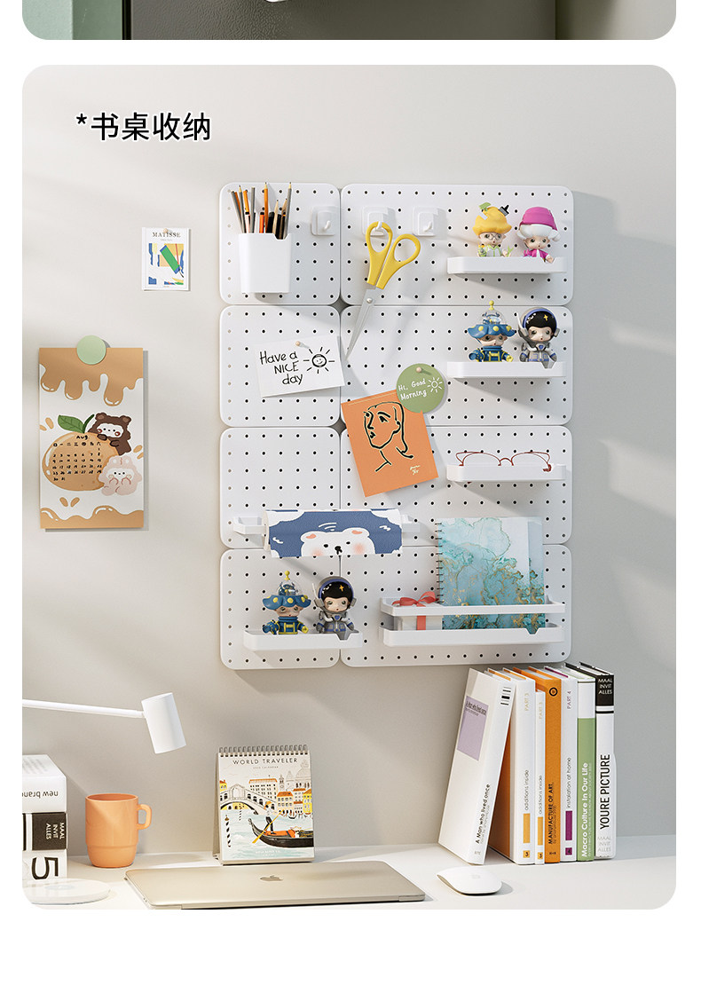 BTV4 학생용 홀보드 책상 일체형 책장 펀치 없는 수납선반 벽걸이 액세서리 후크 학습실 수납