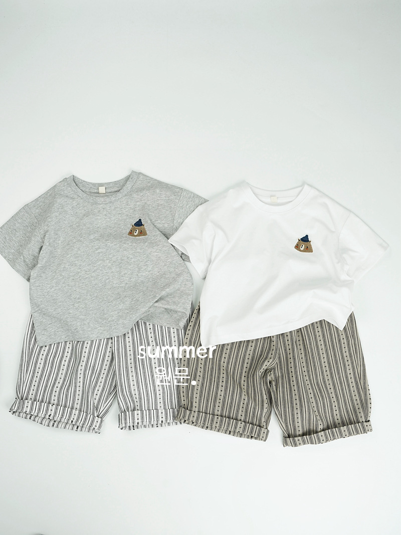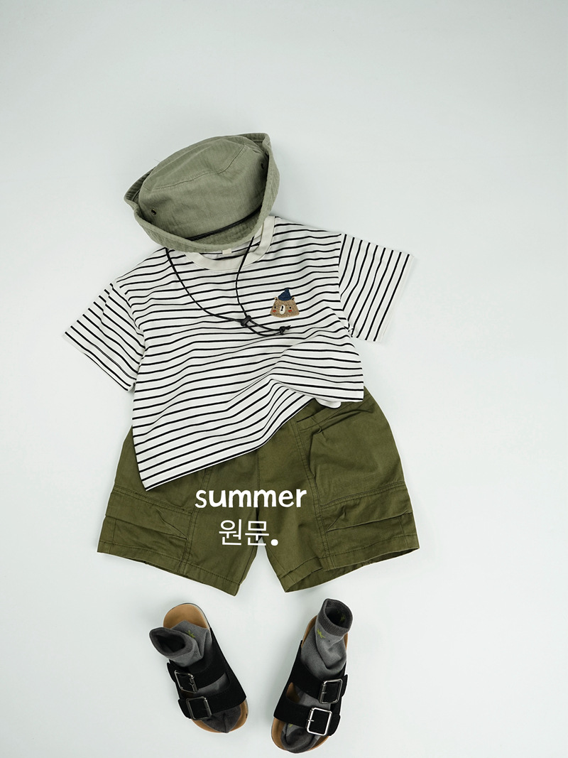 아동용 티셔츠 반팔 2025 여름 새 소년 소녀 만화 곰 티셔츠 베이비 코튼 스트라이프 반팔 티셔츠