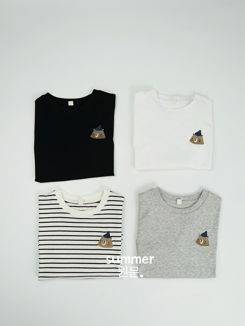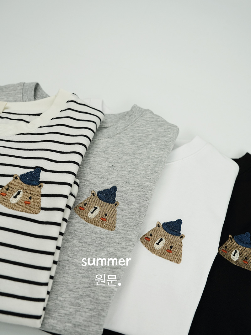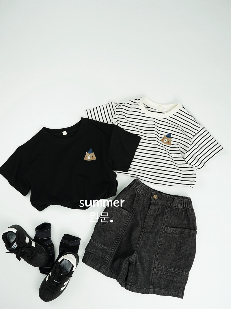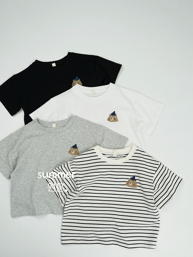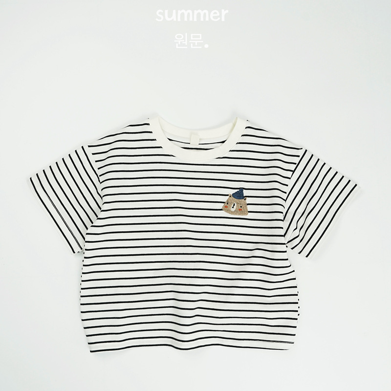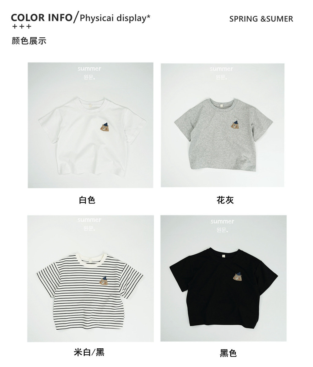 아동용 티셔츠 반팔 2025 여름 새 소년 소녀 만화 곰 티셔츠 베이비 코튼 스트라이프 반팔 티셔츠스토어 가기