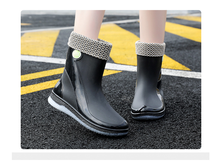 패션 여성의 겨울 짧은 배럴 비 부츠 주방 물 밟기 고무 신발 미끄럼 방지 커버 신발 비 신발 성인 작업 물 신발