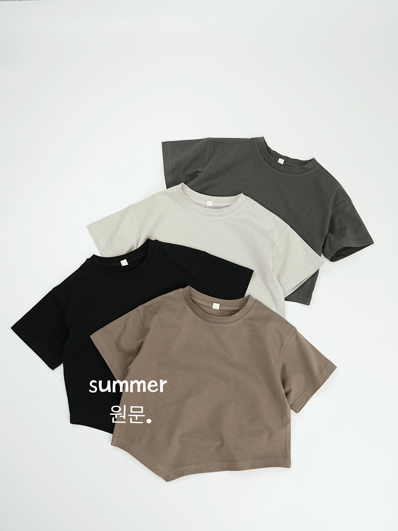 어린이 반소매 티셔츠 2025 여름 남학생 신입 아동복 탑 한국 반소매 티셔츠 면 올매치 트렌디
