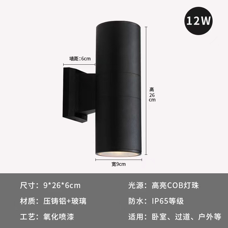 LED 방수 야외 벽 램프 더블 헤드 싱글 헤드 라운드 외벽 위아래 스포트라이트 안뜰 야외 기둥 벽 램프스토어 가기