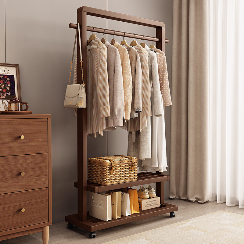 옷걸이 단단한 나무 바닥 옷걸이 가정용 간단한 옷걸이 침실 모바일 옷걸이 실내 옷걸이스토어 가기