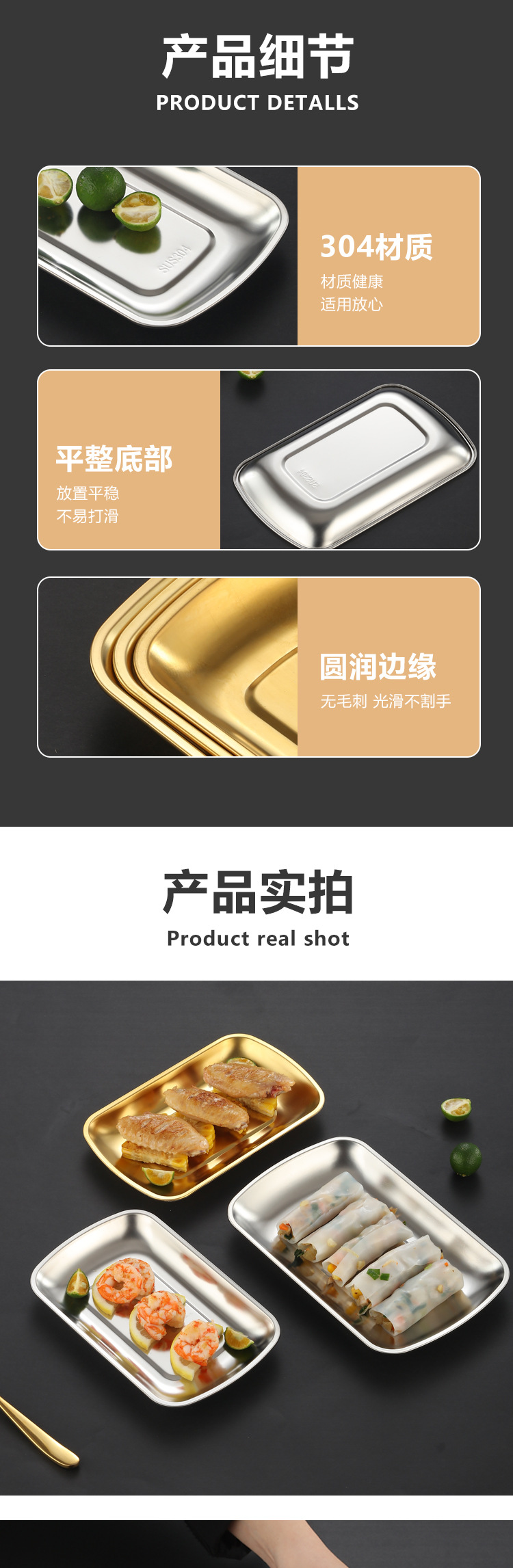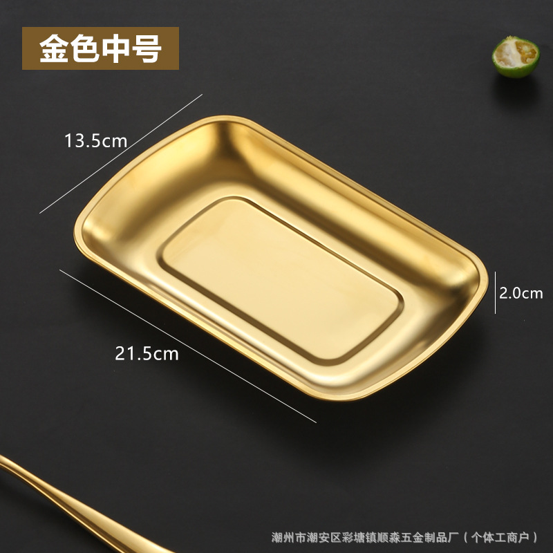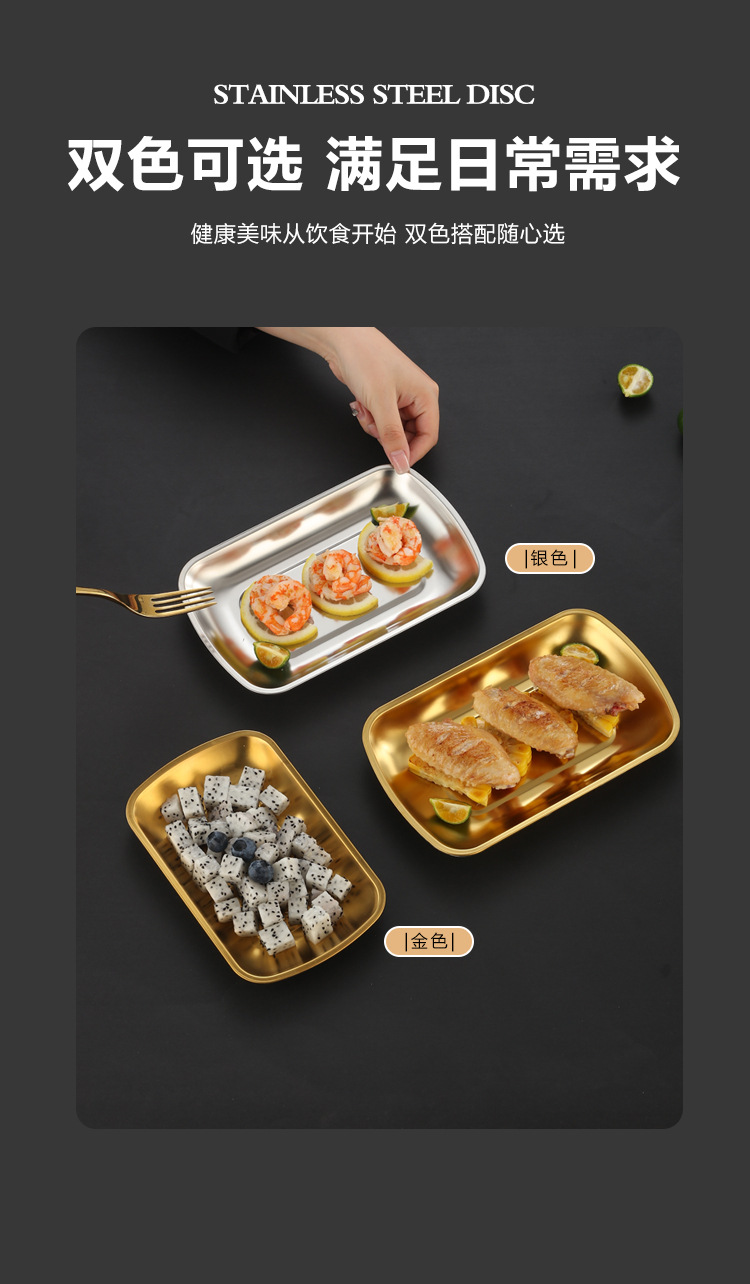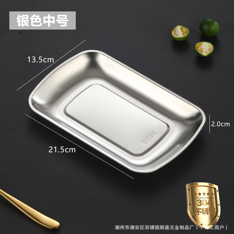 304 스테인레스 스틸 쌀 롤 플레이트 직사각형 바베큐 플레이트 만두 플레이트 플랫 플레이트 상업용 크리 에이 티브 가정용 황금 스낵 플레이트스토어 가기