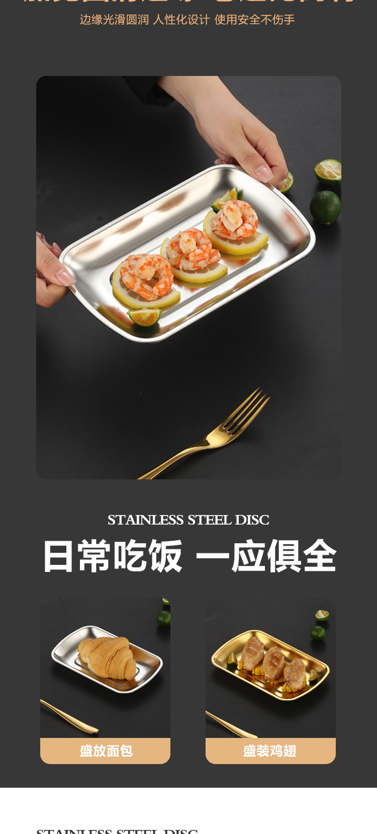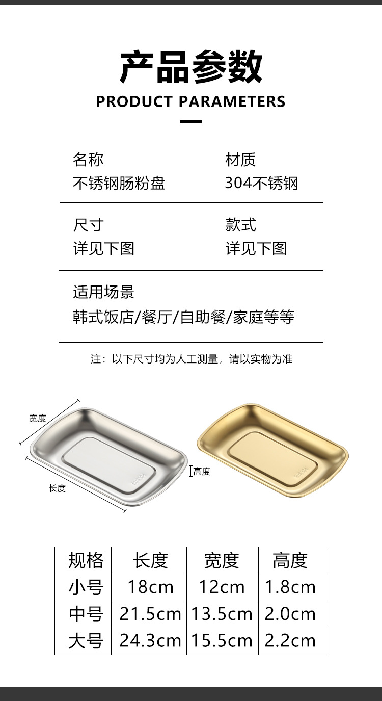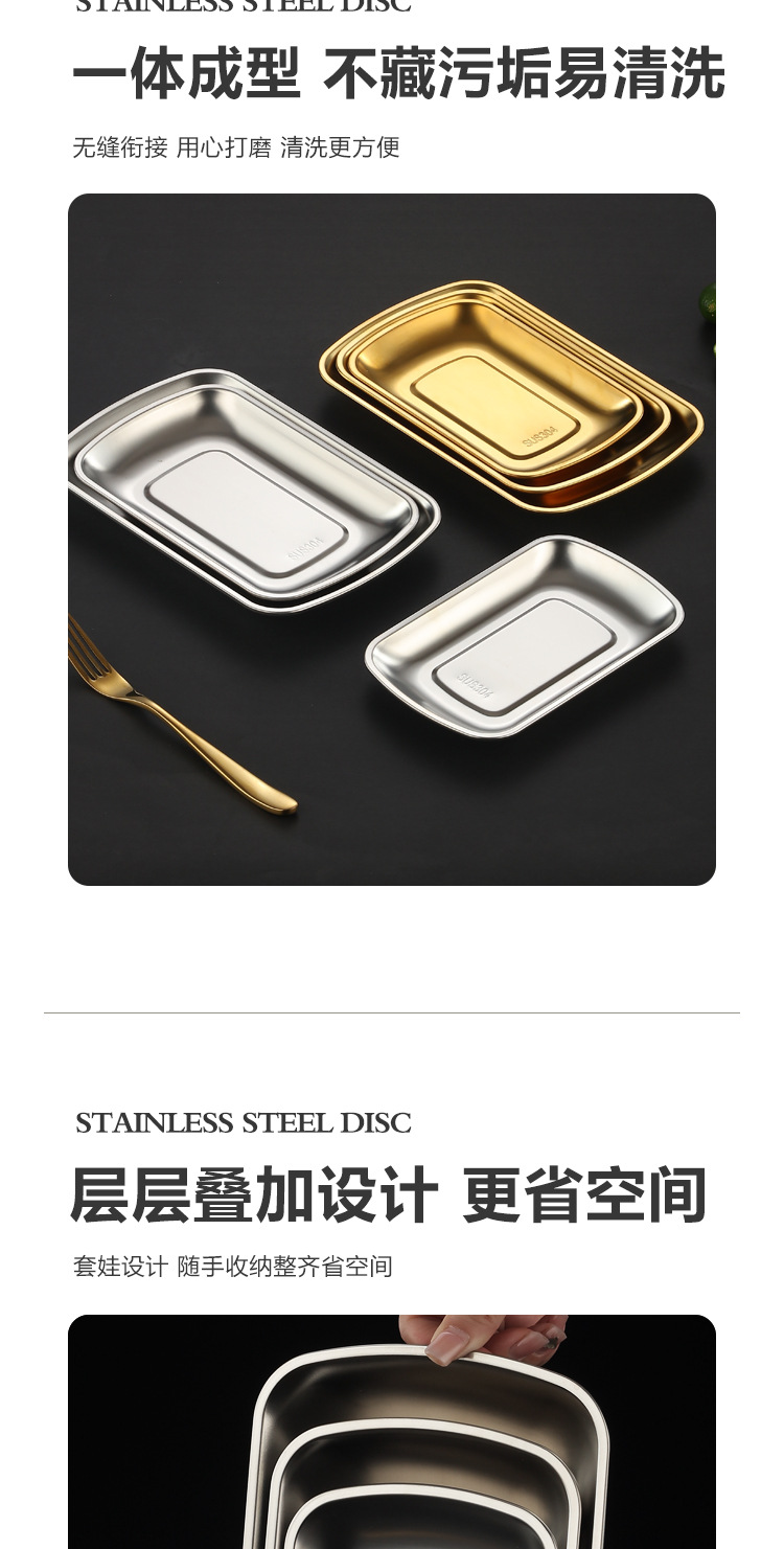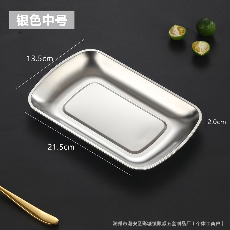 304 스테인레스 스틸 쌀 롤 플레이트 직사각형 바베큐 플레이트 만두 플레이트 플랫 플레이트 상업용 크리 에이 티브 가정용 황금 스낵 플레이트스토어 가기