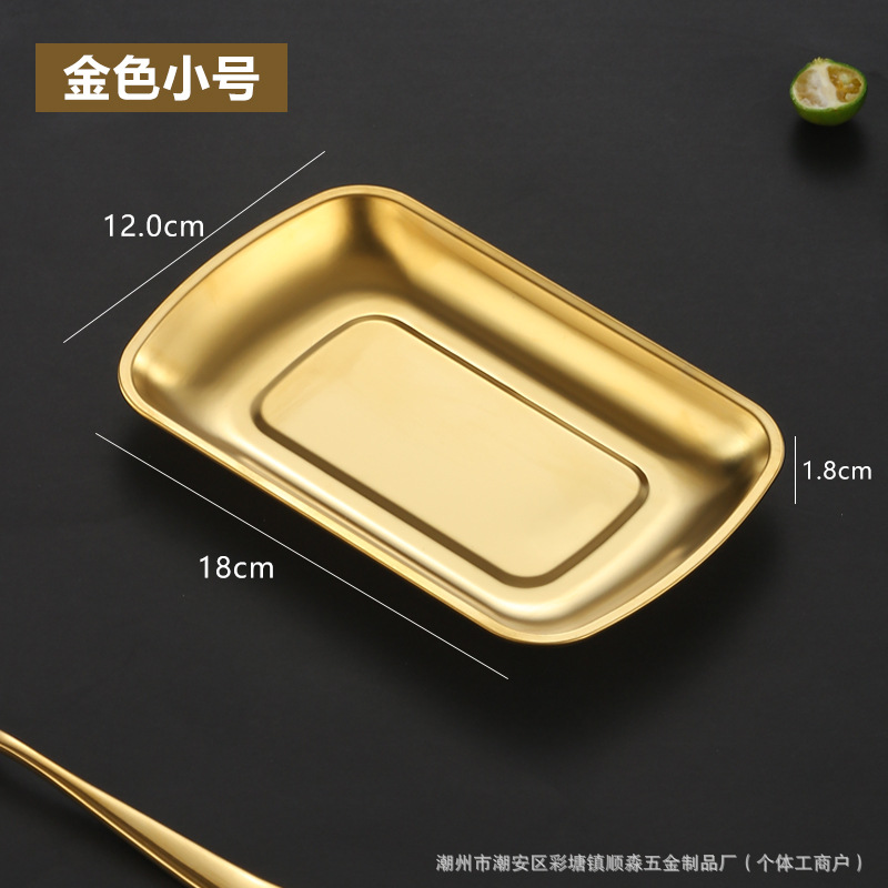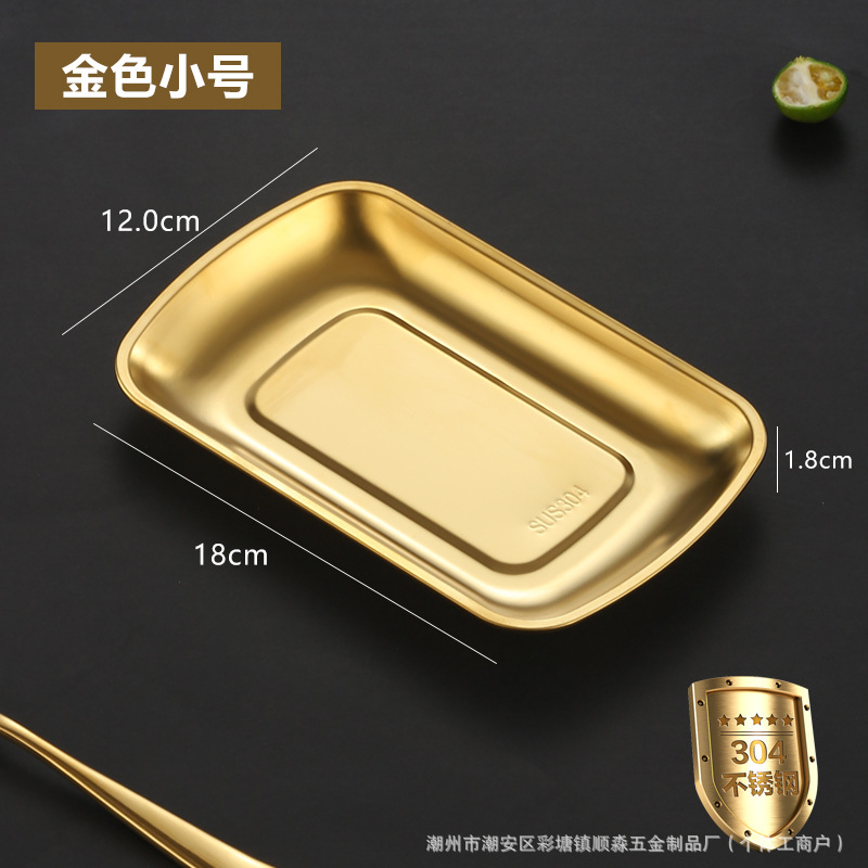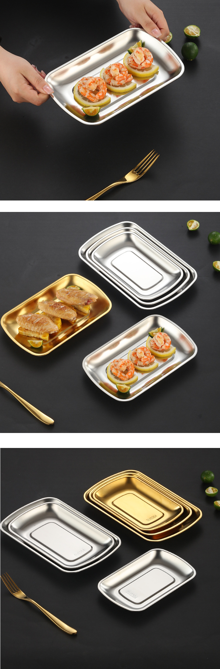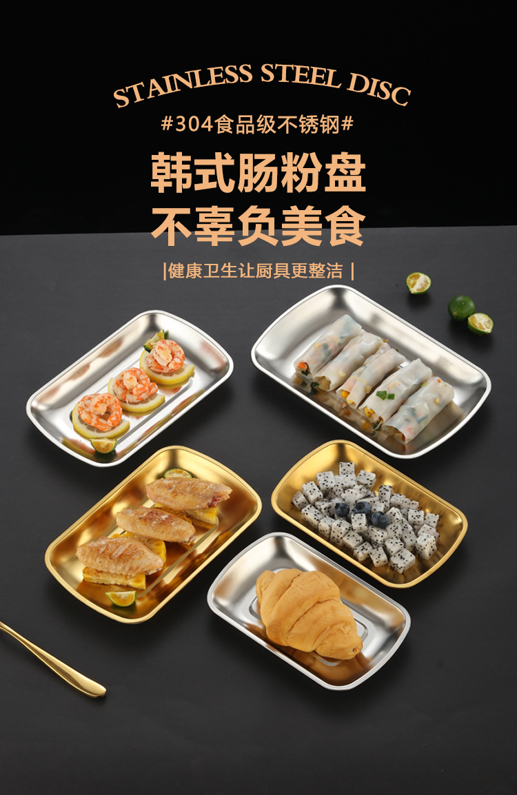 304 스테인레스 스틸 쌀 롤 플레이트 직사각형 바베큐 플레이트 만두 플레이트 플랫 플레이트 상업용 크리 에이 티브 가정용 황금 스낵 플레이트