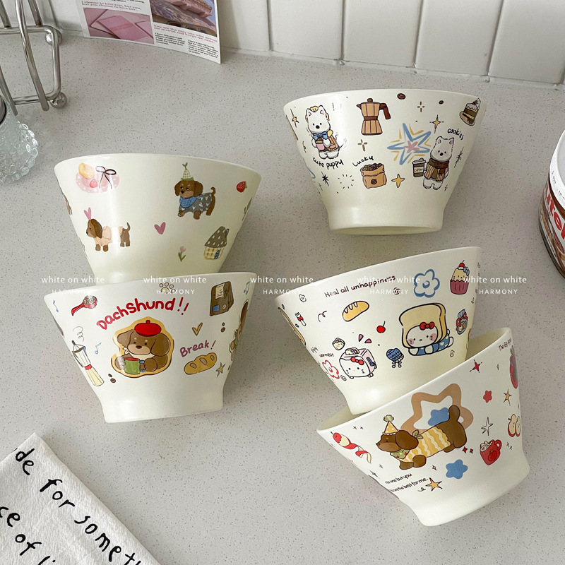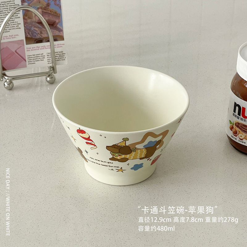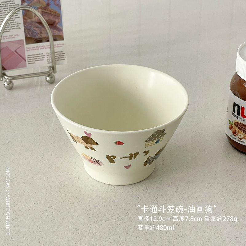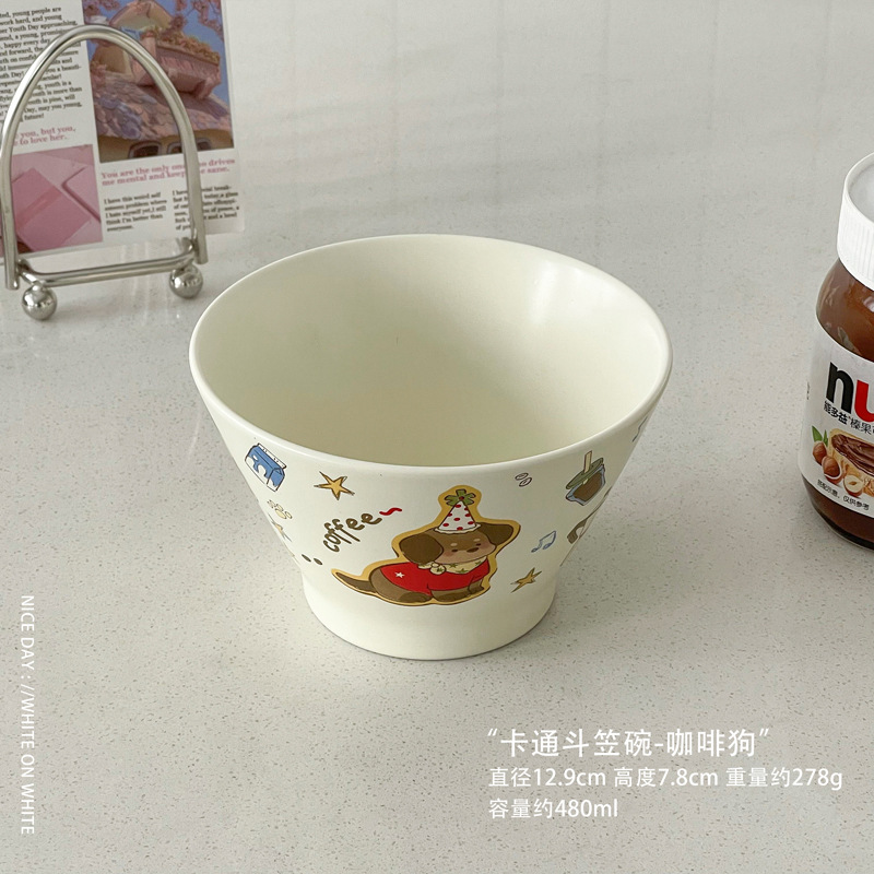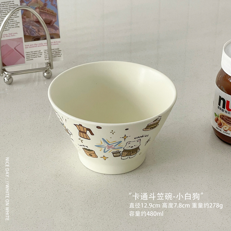 • 만화 대나무 모자 그릇 - 작은 흰색 개