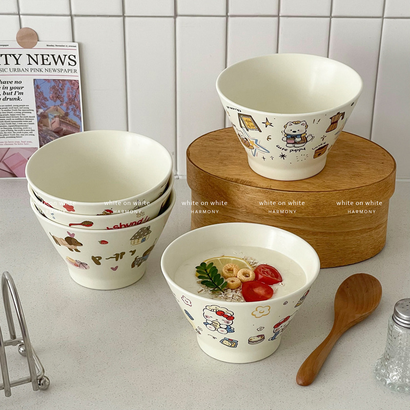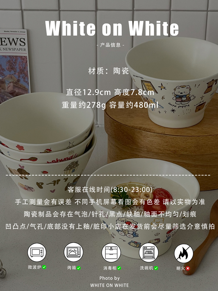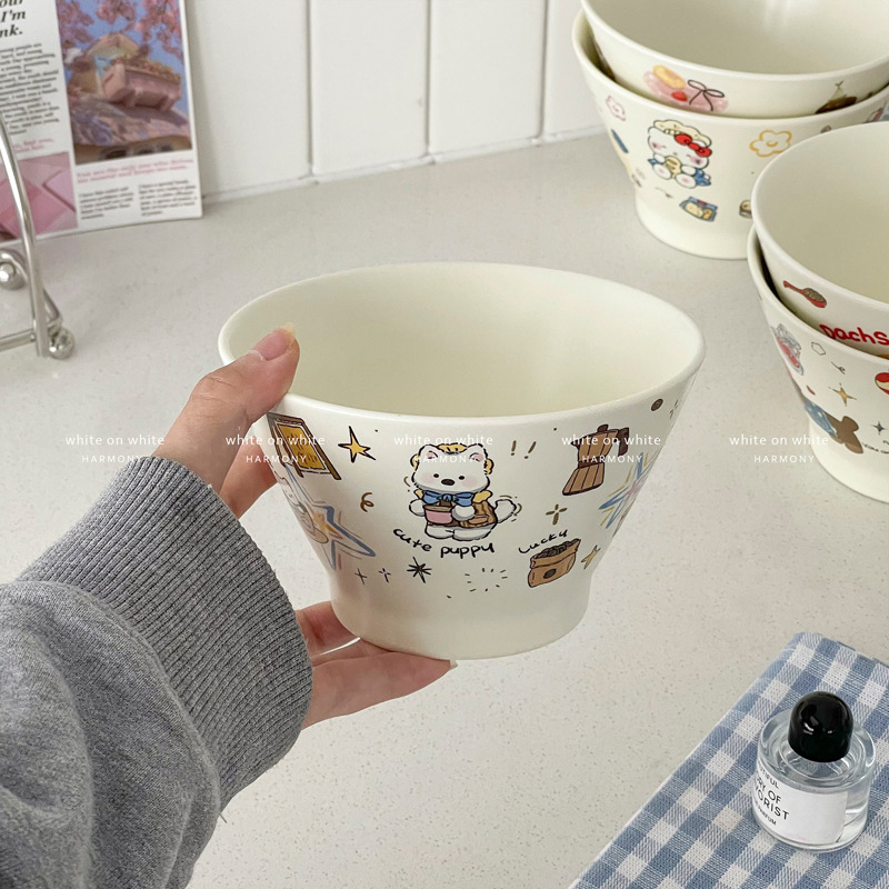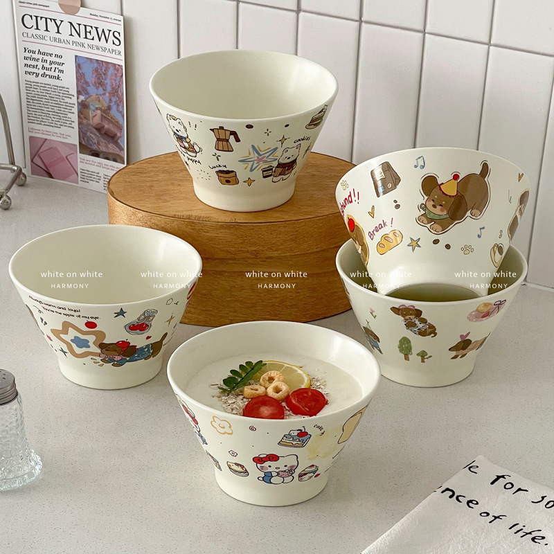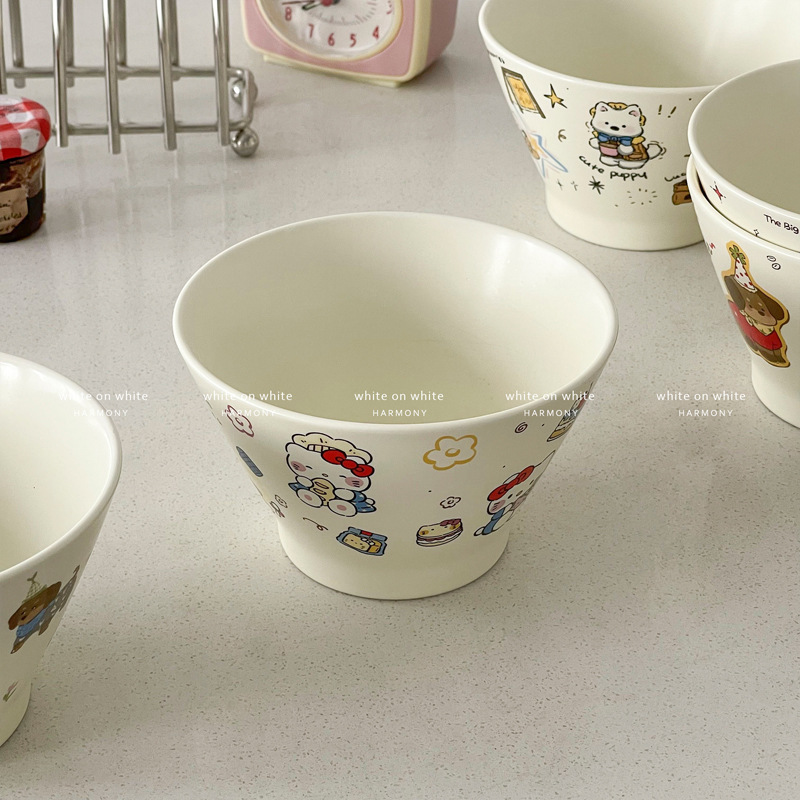 • 만화 대나무 모자 그릇 - 작은 흰색 개