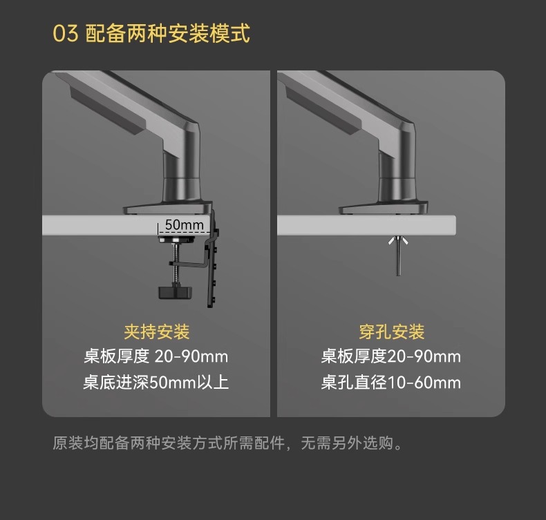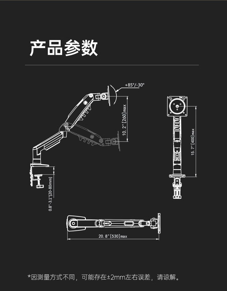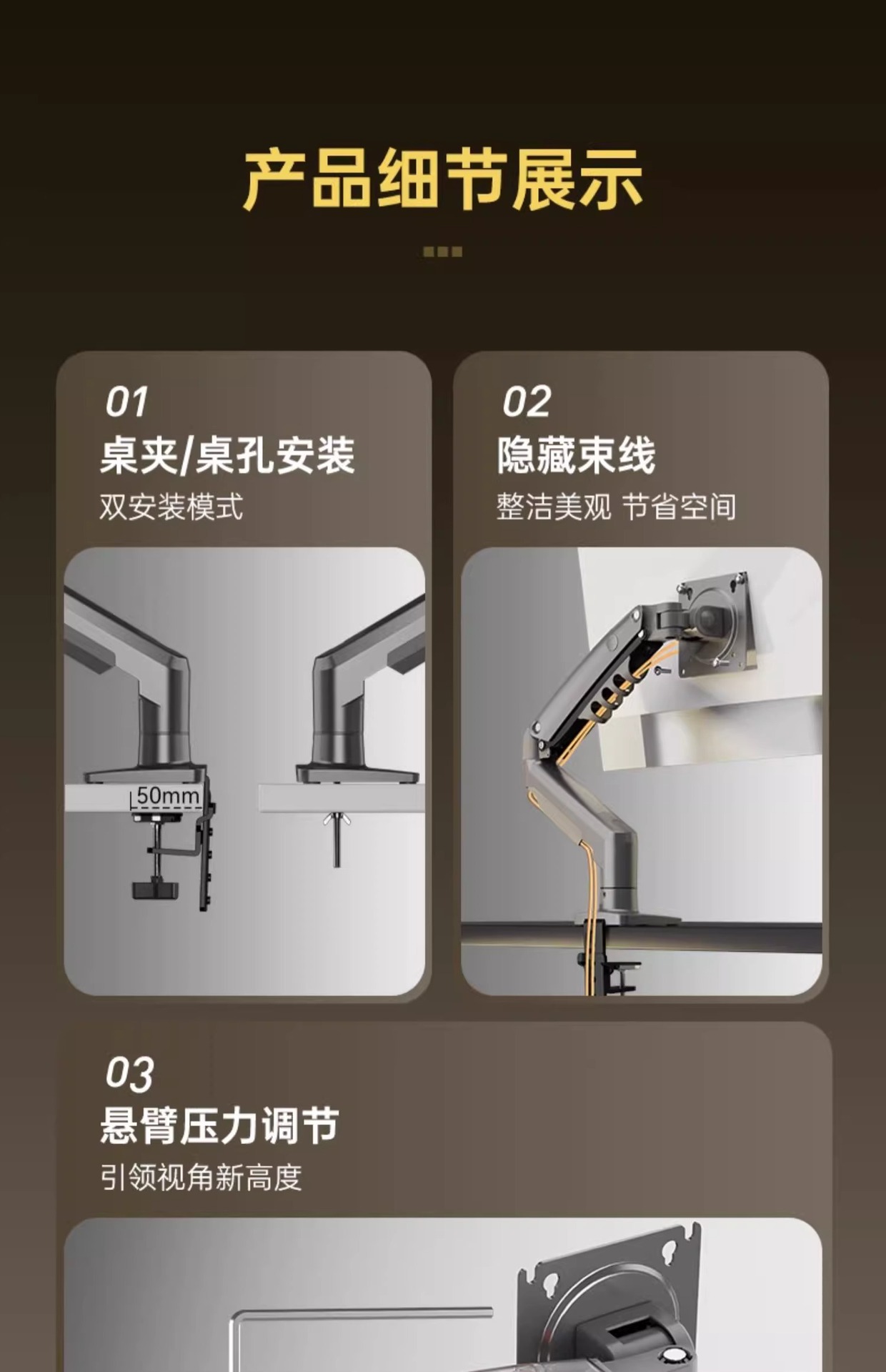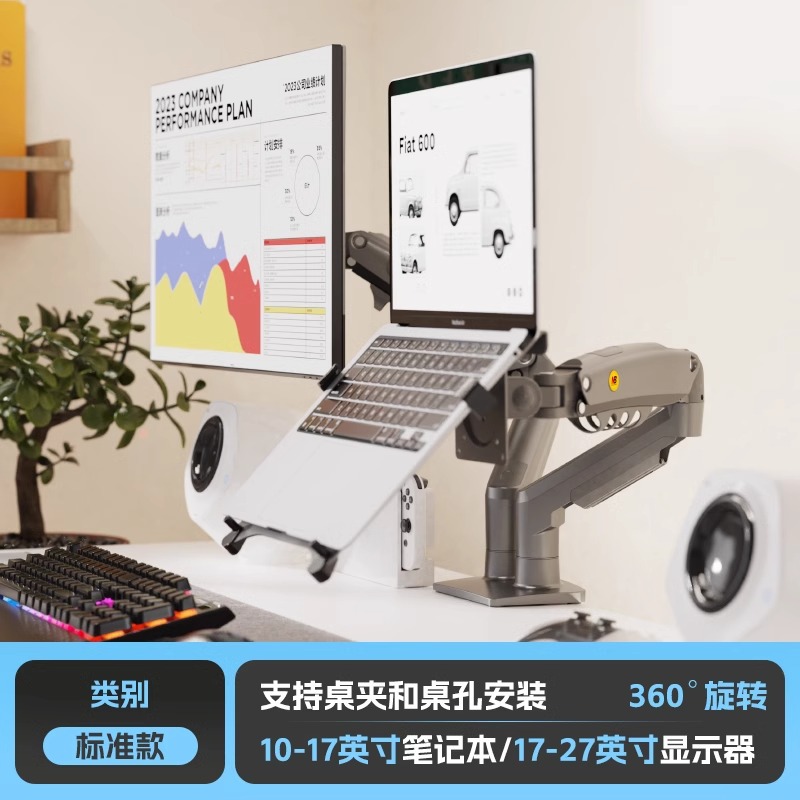 • [상하 스크린 스태킹] [자유 각도 조절] 9KG 내하중 듀얼 스크린 컬럼 모델