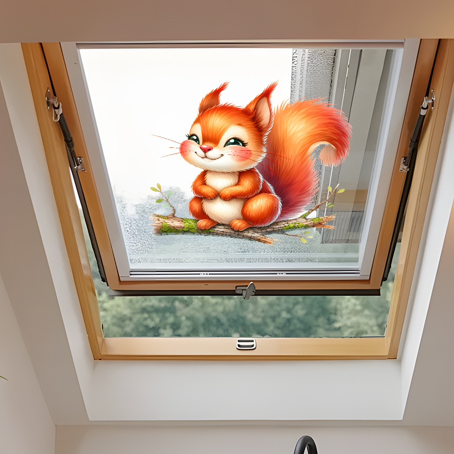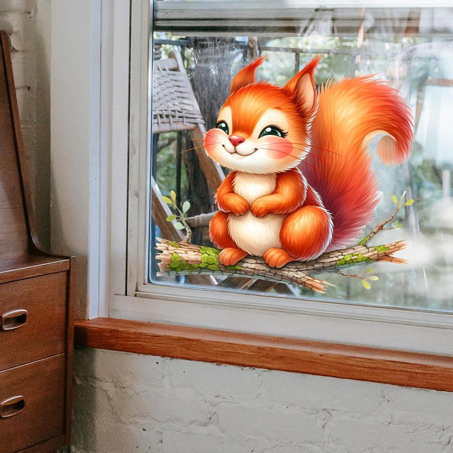 BR3705C 웃는 귀여운 작은 다람쥐 만화 애니메이션 침실 기숙사 로프트 장식 창 스티커 자체 접착 종이스토어 가기