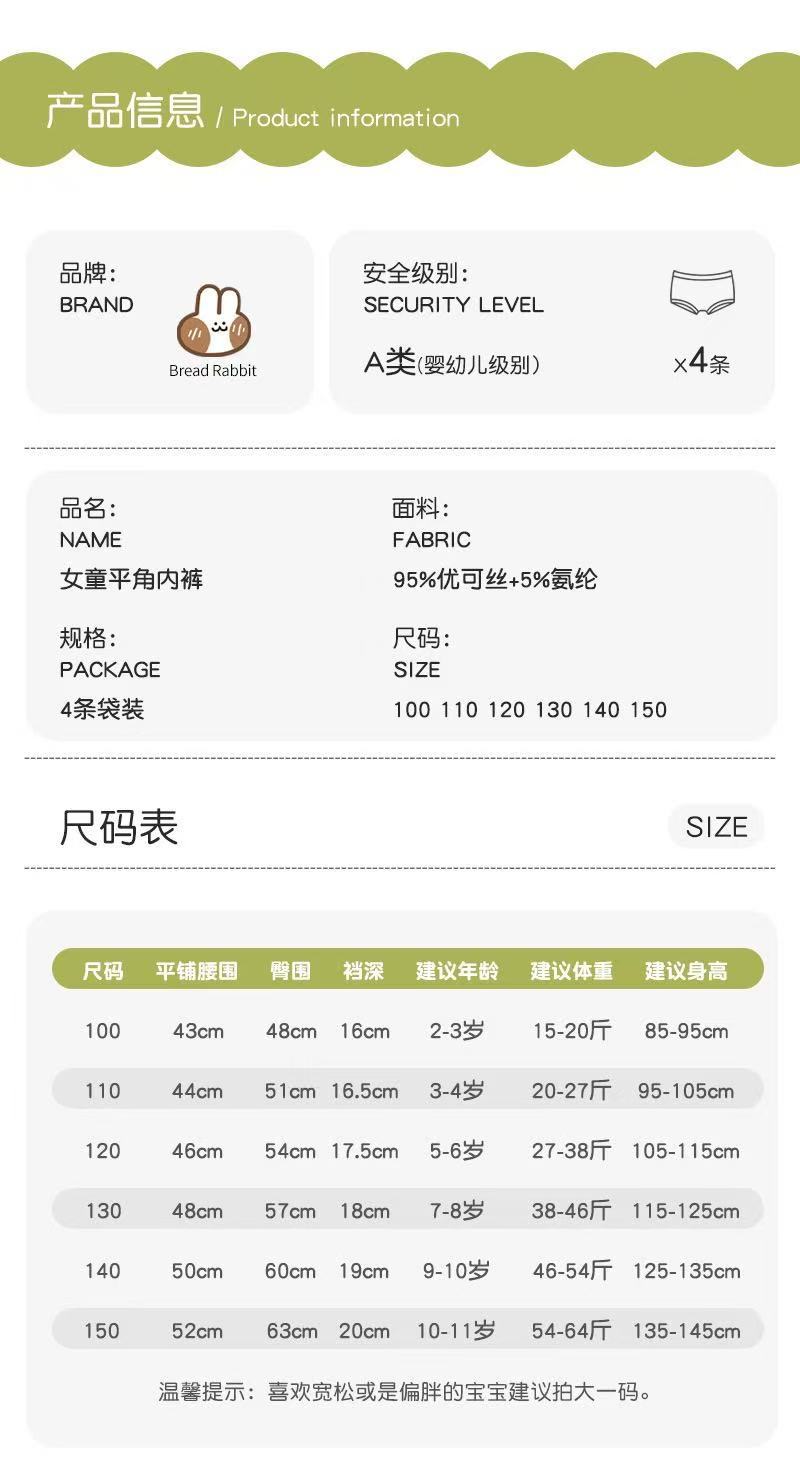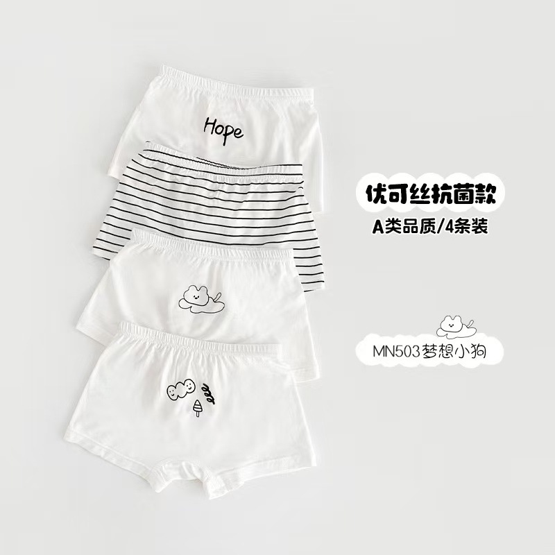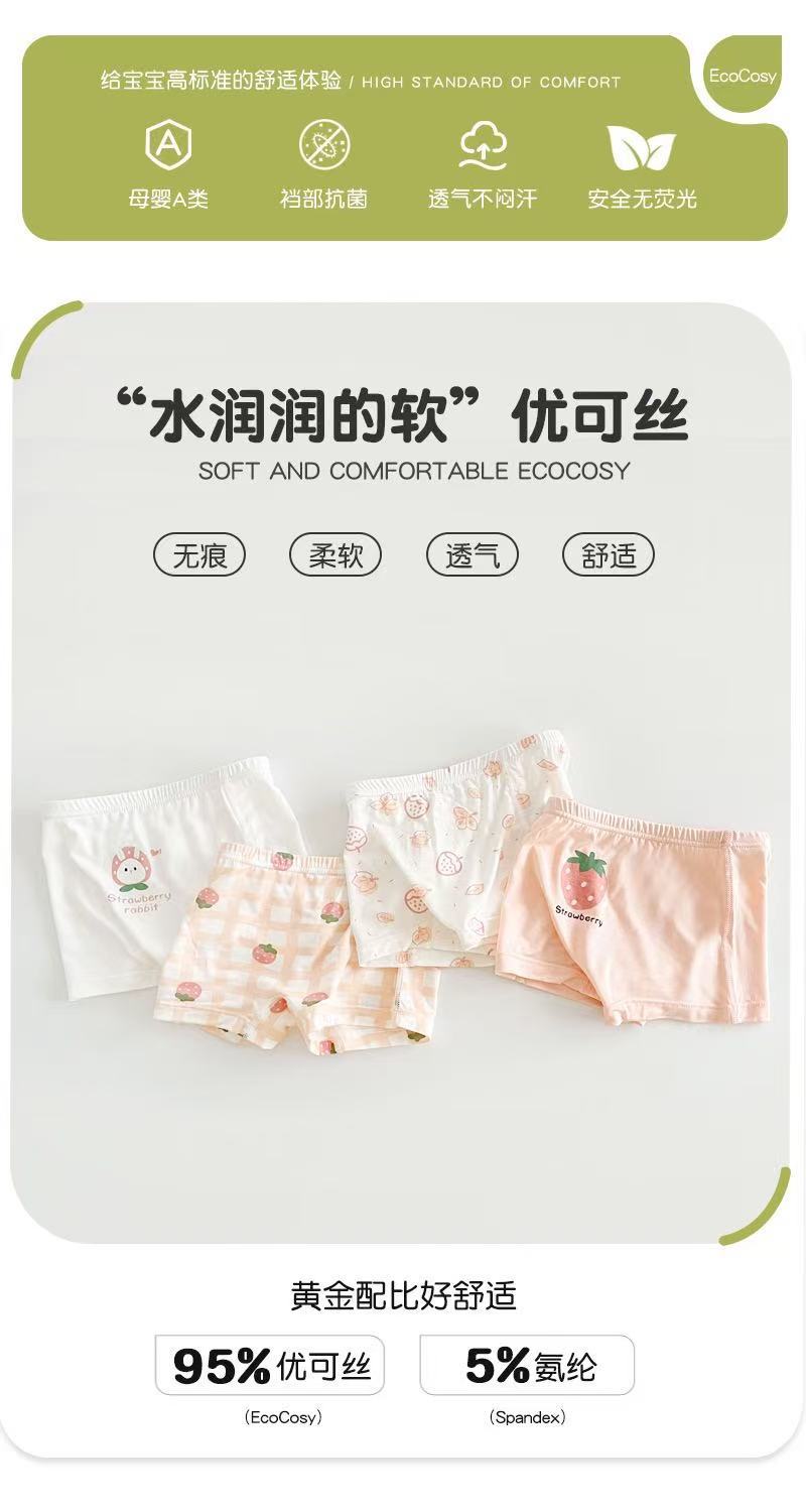 선시드 사슴 2025 도매 봄과 여름 얇은 통기성 어린이 속옷 유커 클래스 A 항균 소녀 소년 4 코너