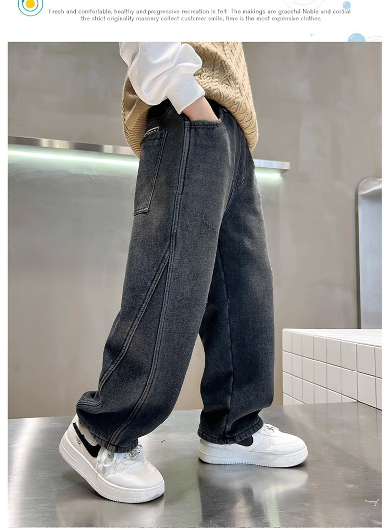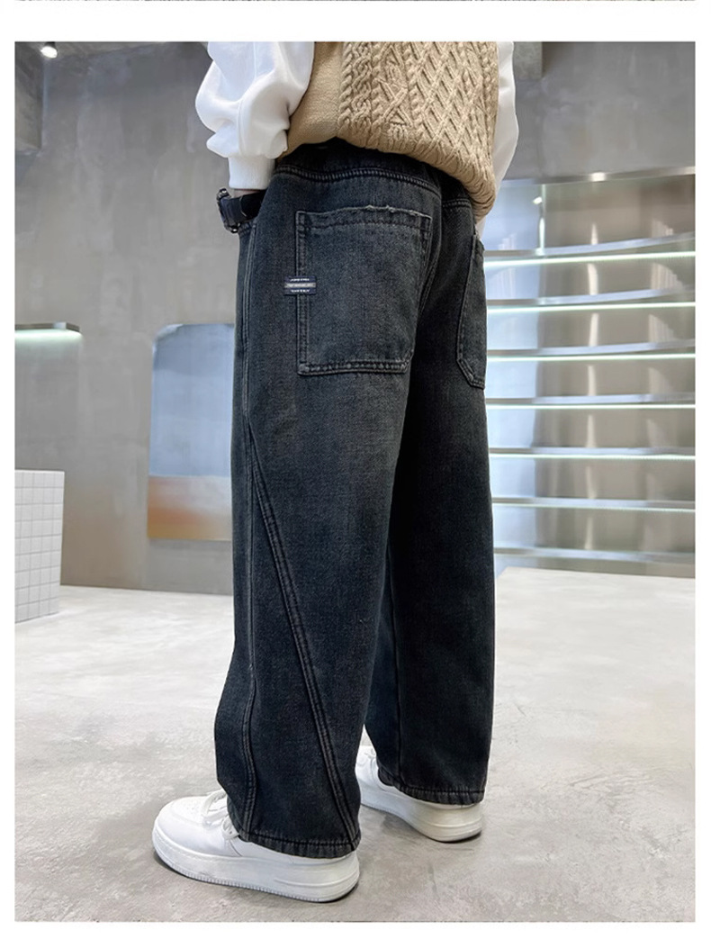 아동복 남아용 플리스 데님 팬츠 2026 신상 중대형 아동 캐주얼 팬츠 블랙 롱팬츠 남아용 봄가을 바지스토어 가기
