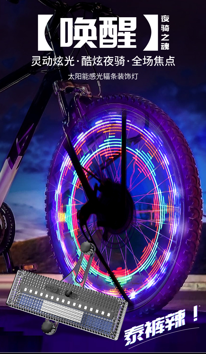자전거 태양 충전 조명 어린이 균형 자동차 핫 휠 꽃 드럼 라이트 스포크 다채로운 LED 유도 휠 허브