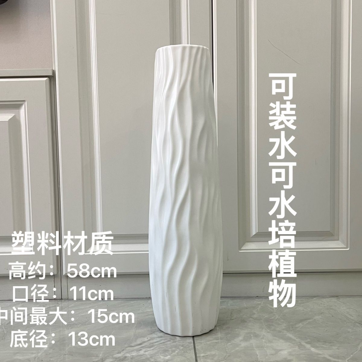 바닥 대형 꽃병, 높고 간단한 수경 플라스틱 모조 세라믹 흰색 검정색 유럽 스타일 홈 드라이 플라워 플라워 어레인지먼트 거실 장식