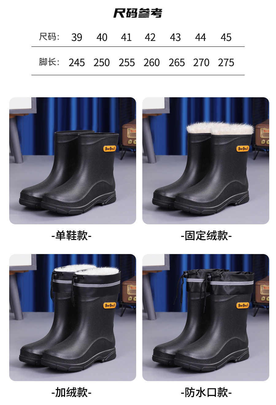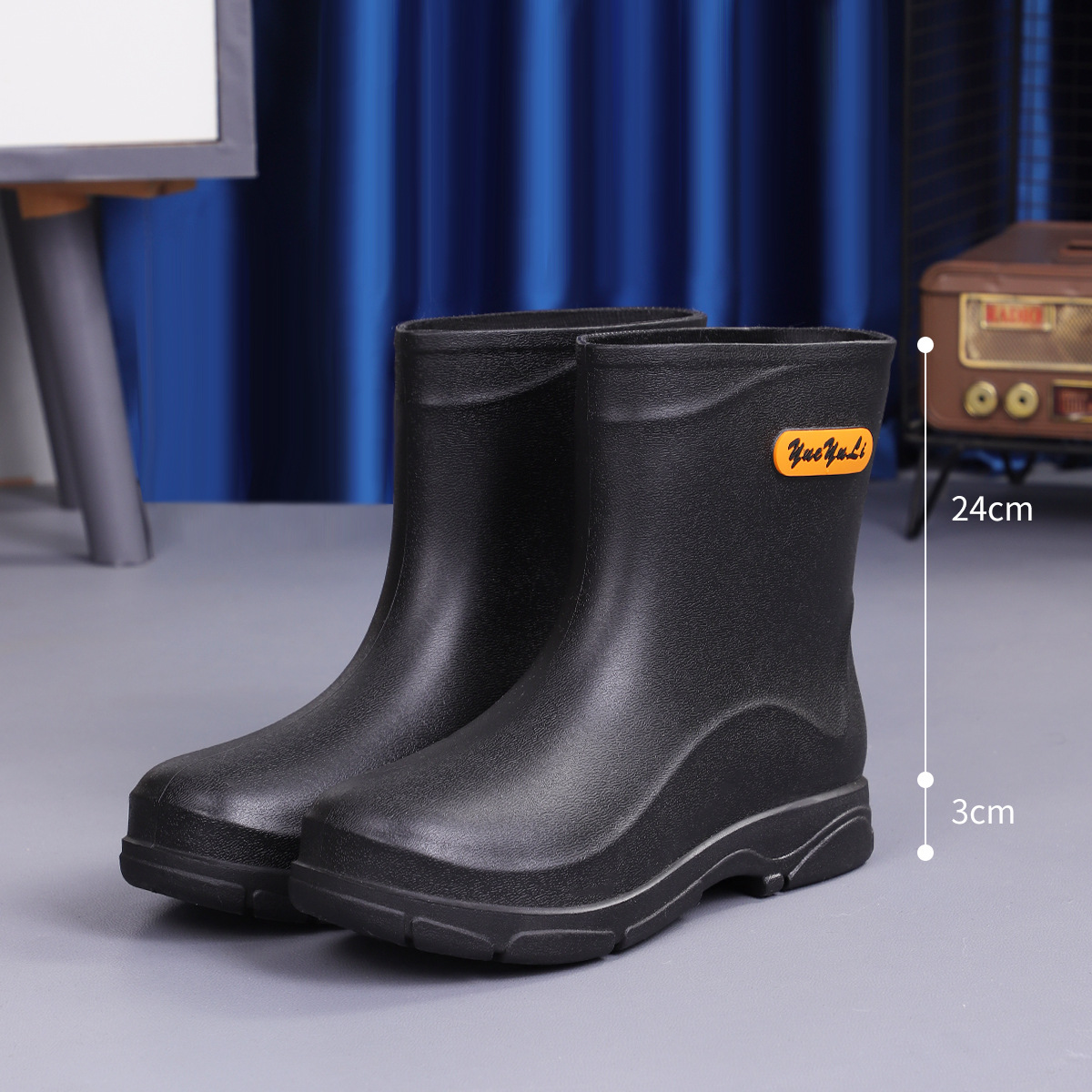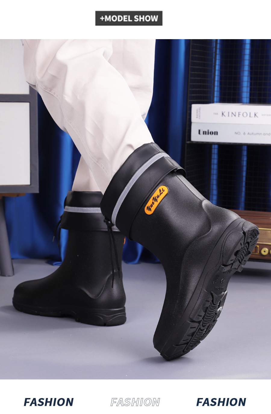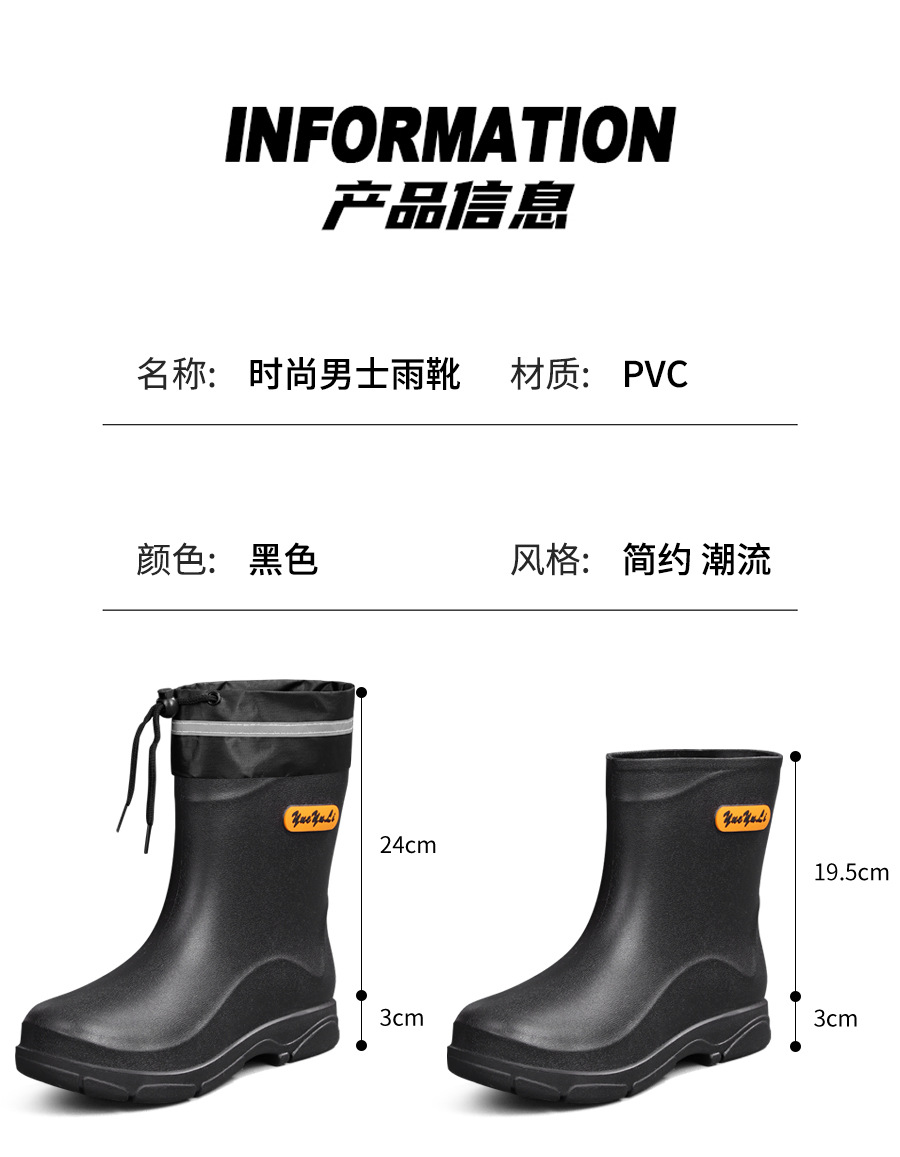 짧은 장화 남성 패션 고무 신발 짧은 낚시 방수 미끄럼 방지 주방 작업 물 신발 두꺼운 내마모성 장화