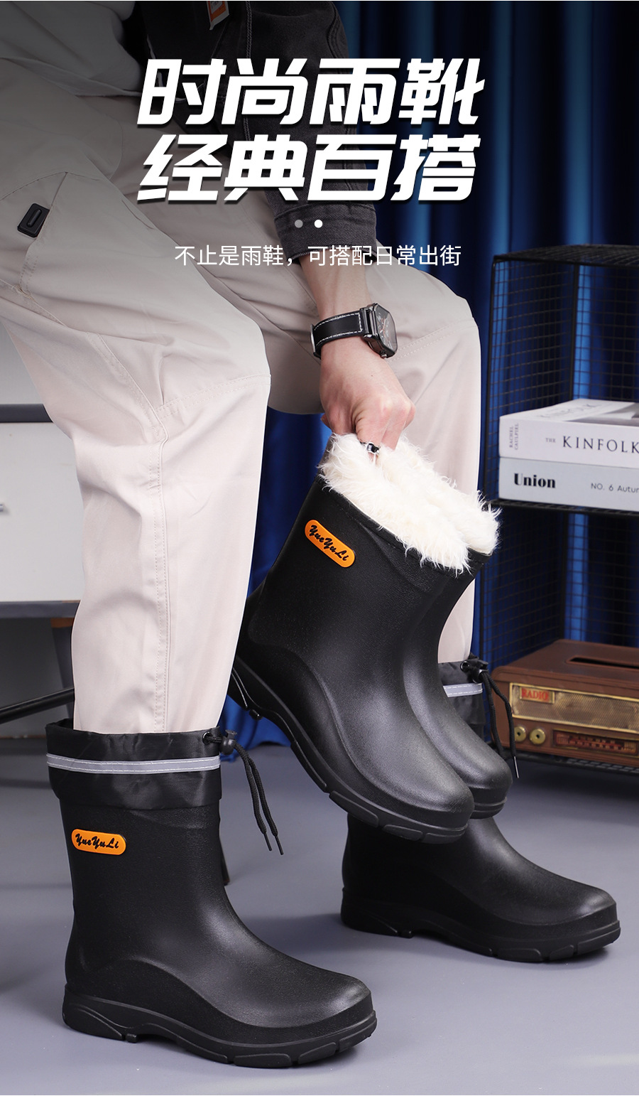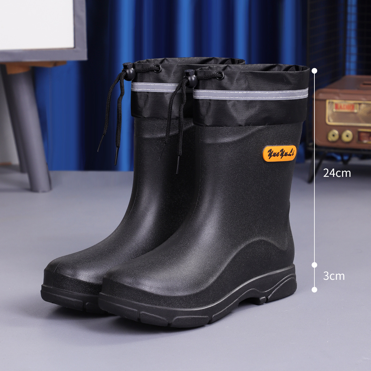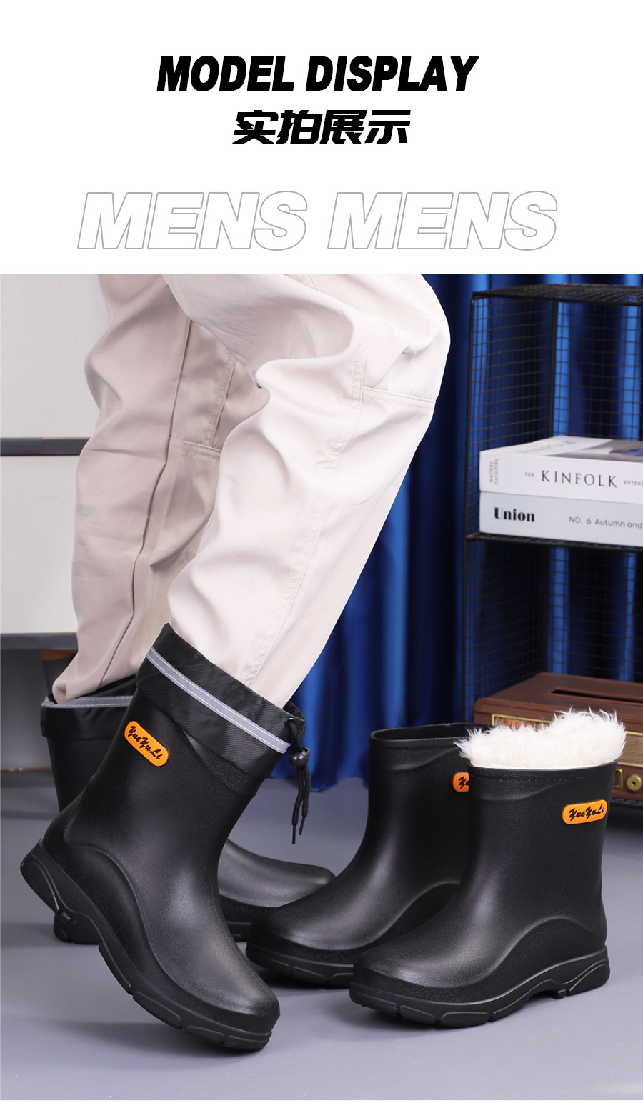 짧은 장화 남성 패션 고무 신발 짧은 낚시 방수 미끄럼 방지 주방 작업 물 신발 두꺼운 내마모성 장화