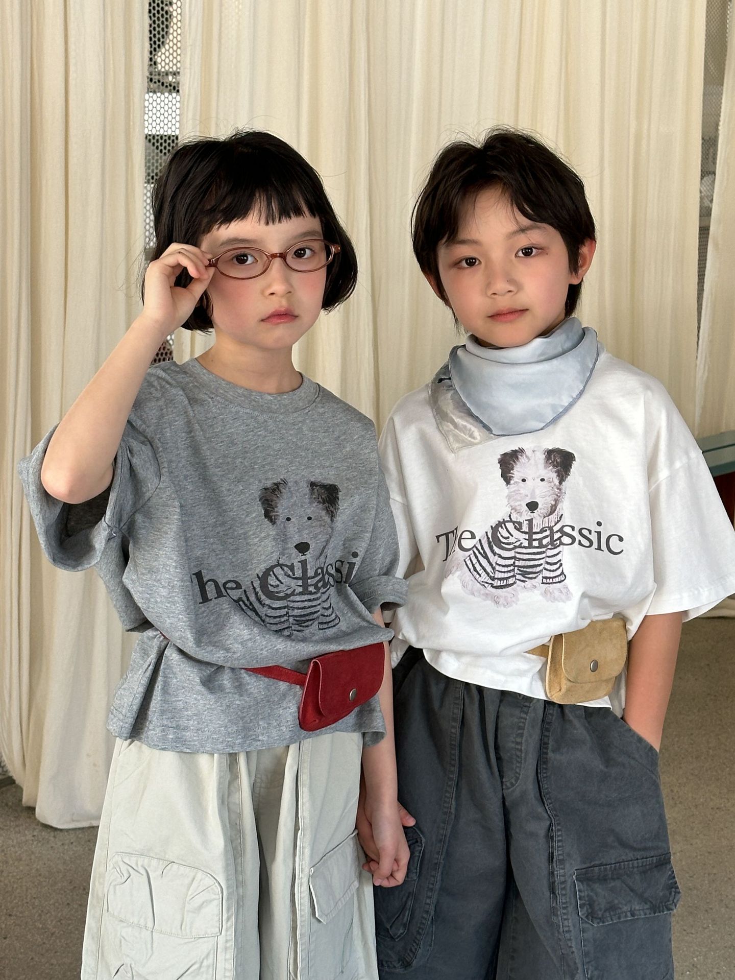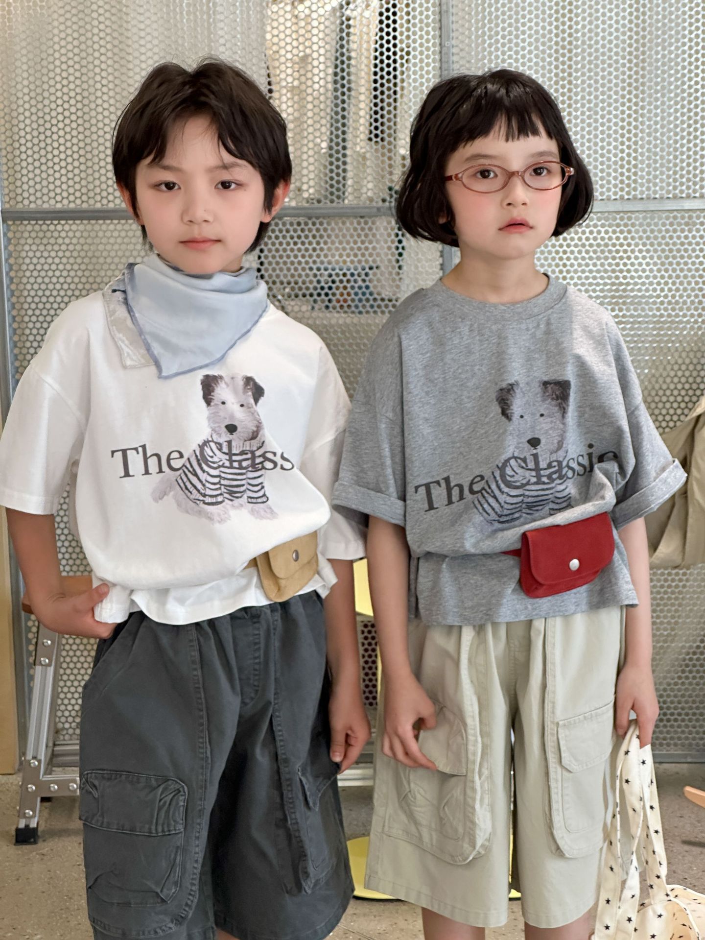 한국 아동복 반팔 25 여름 새 어린이 귀여운 개 인쇄 티셔츠 캐주얼 올매치 탑 소년 소녀스토어 가기