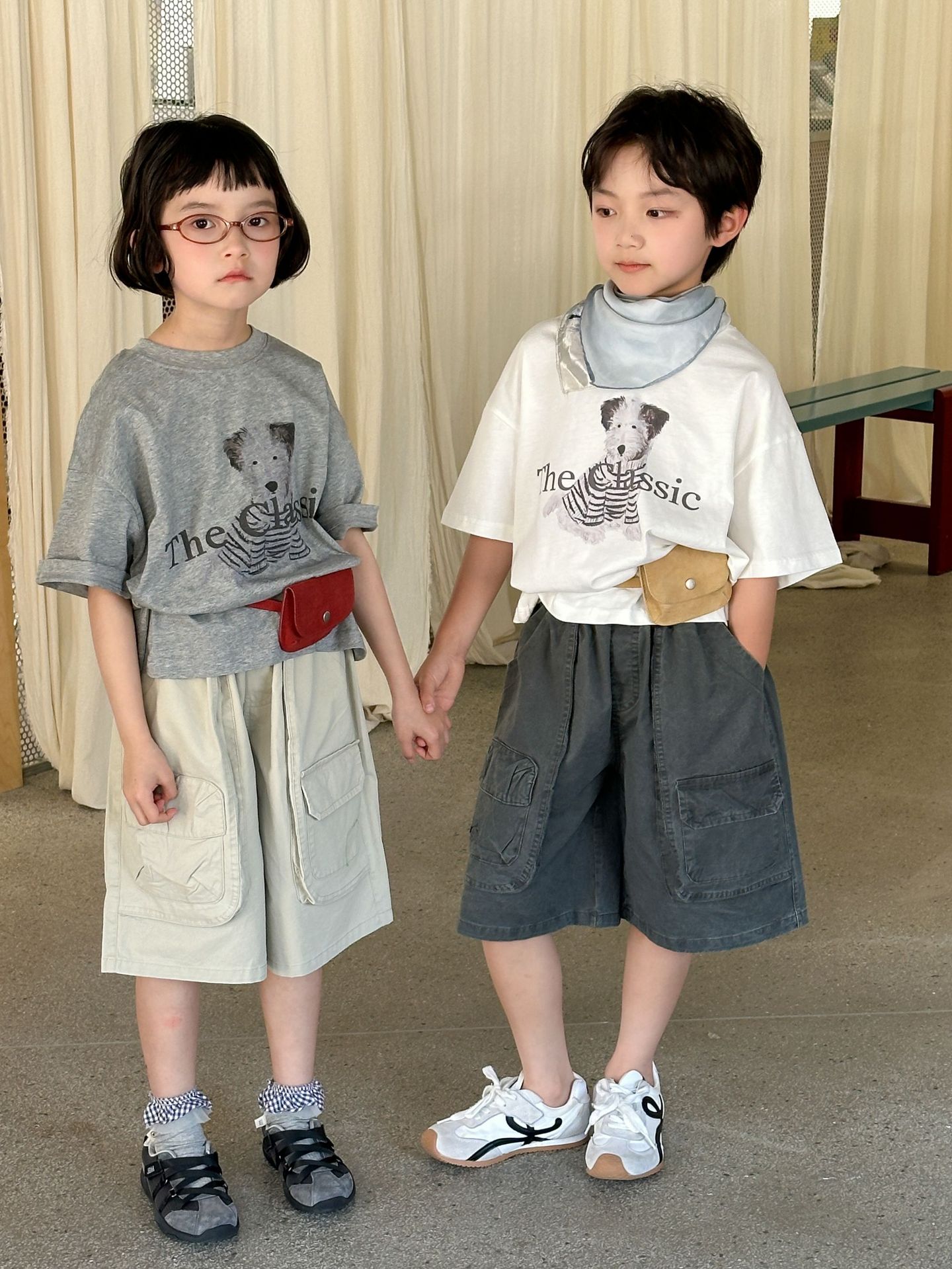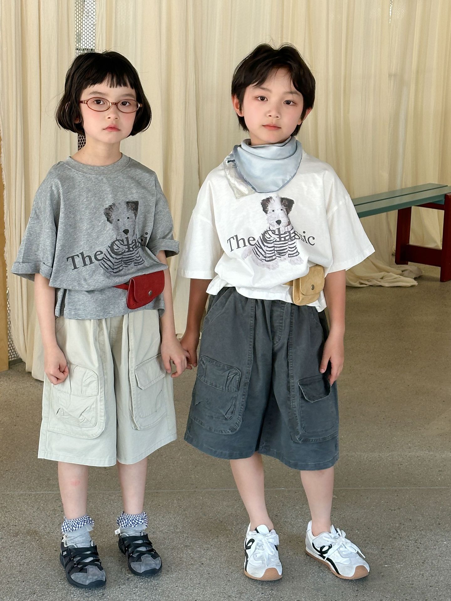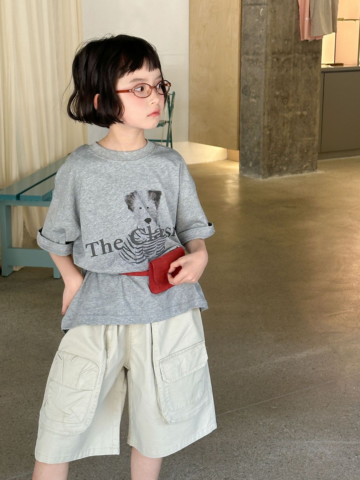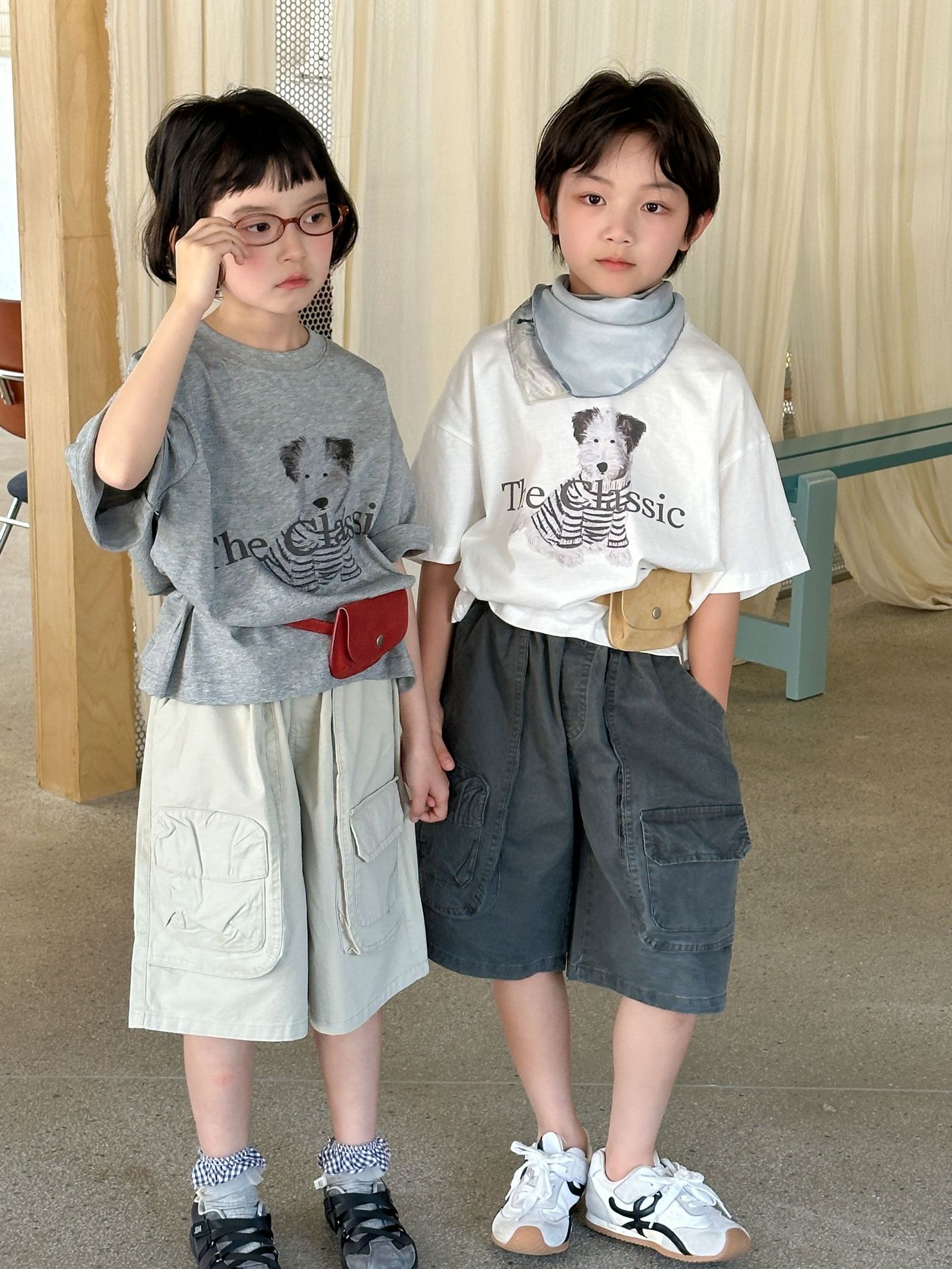 한국 아동복 반팔 25 여름 새 어린이 귀여운 개 인쇄 티셔츠 캐주얼 올매치 탑 소년 소녀