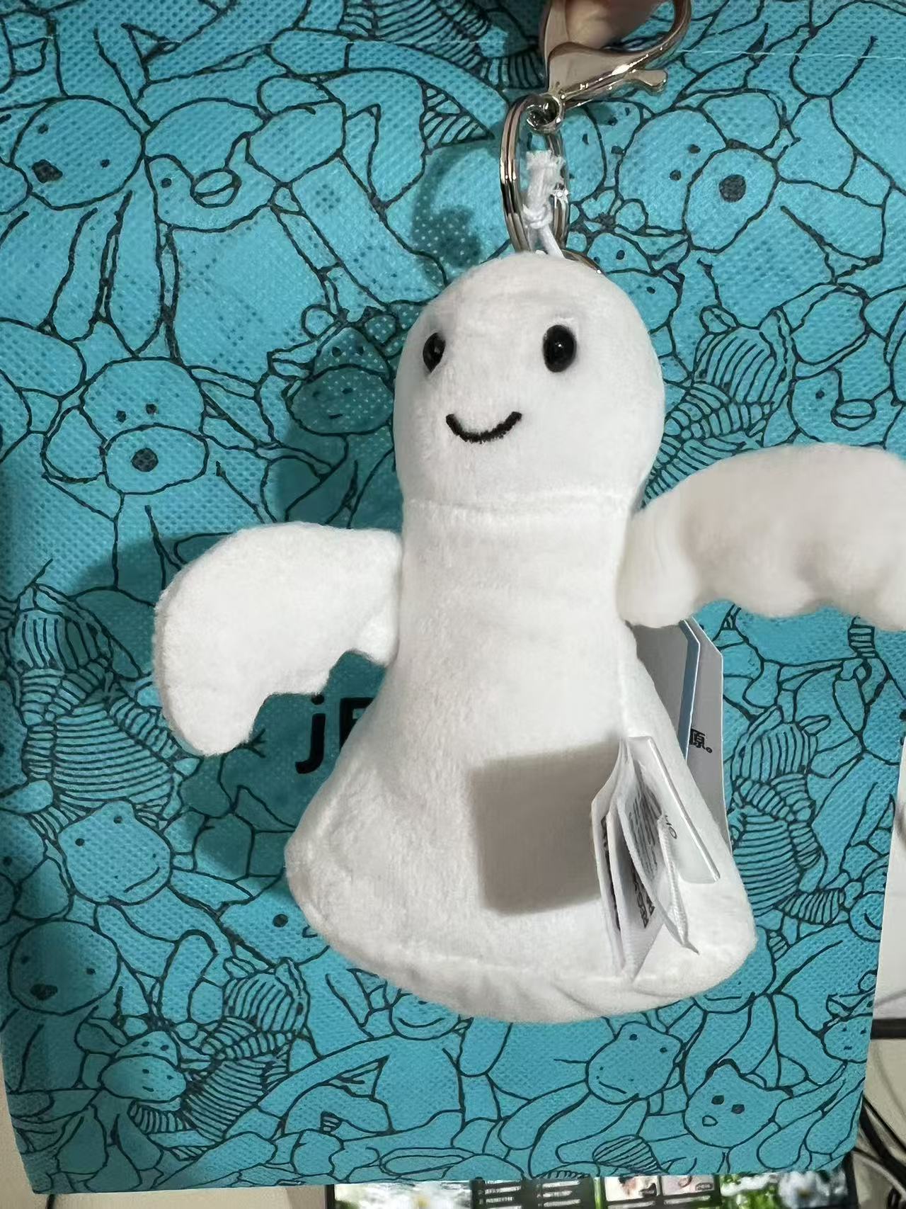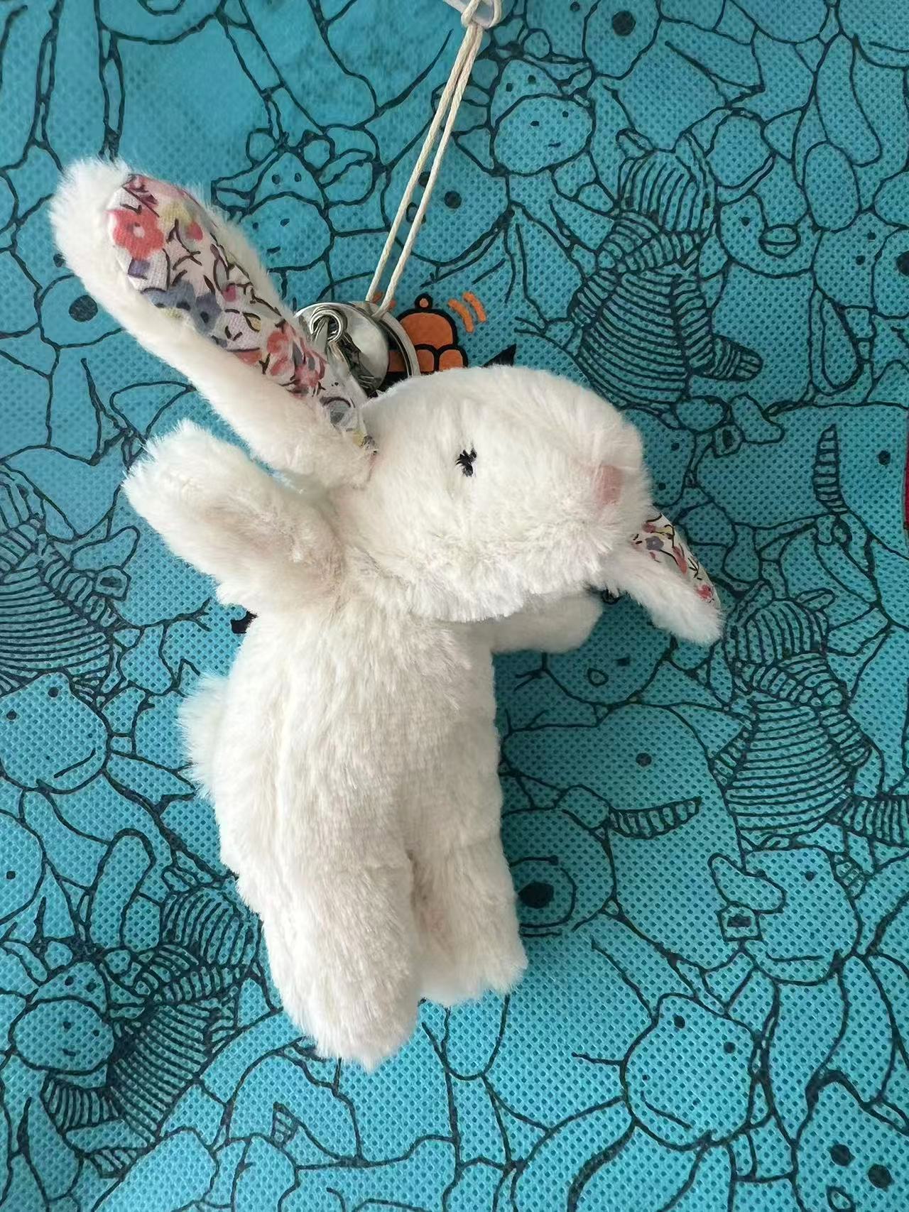 • 흰색 엎드린 토끼 인형 키링