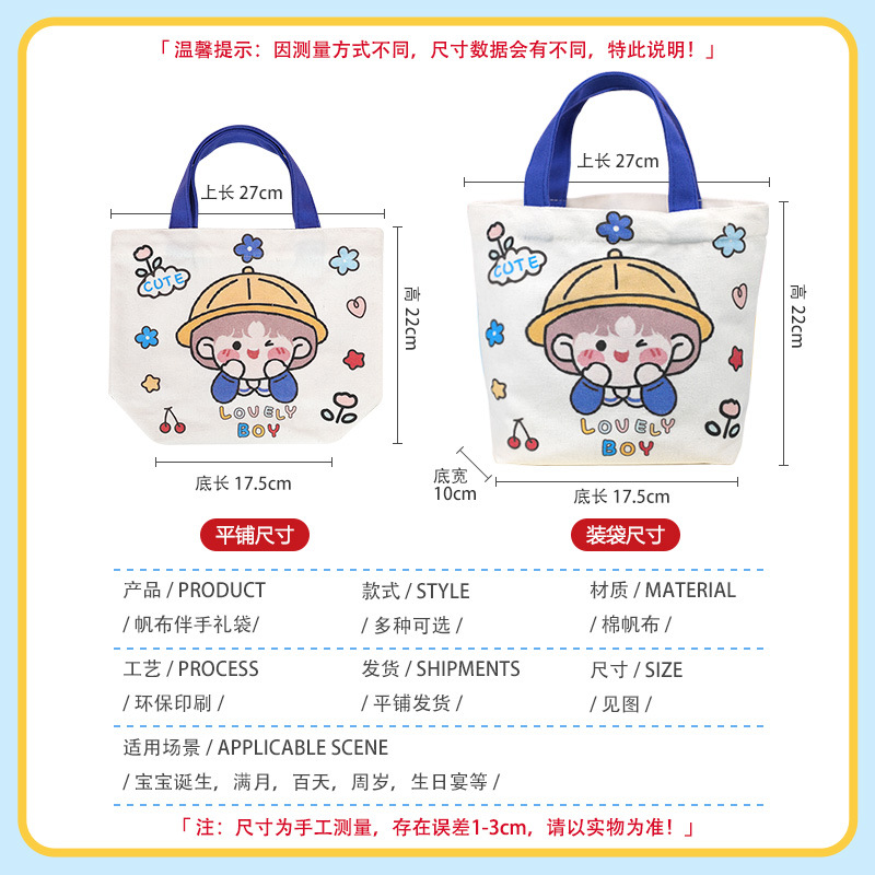 어린이 손 선물 토트 백 생일 보름달 선물 포장 빈 가방 캔버스 선물 가방 유치원스토어 가기