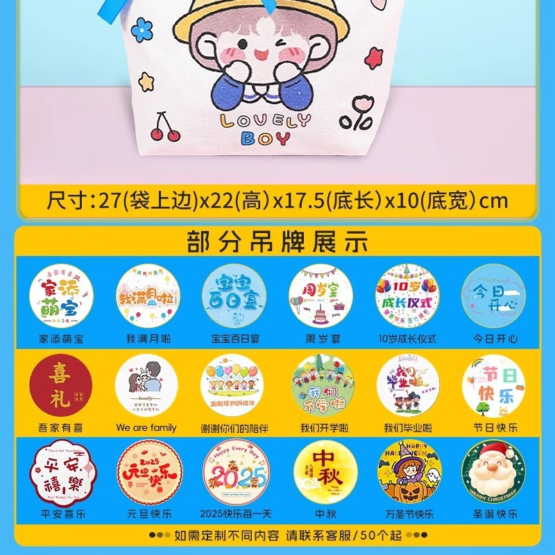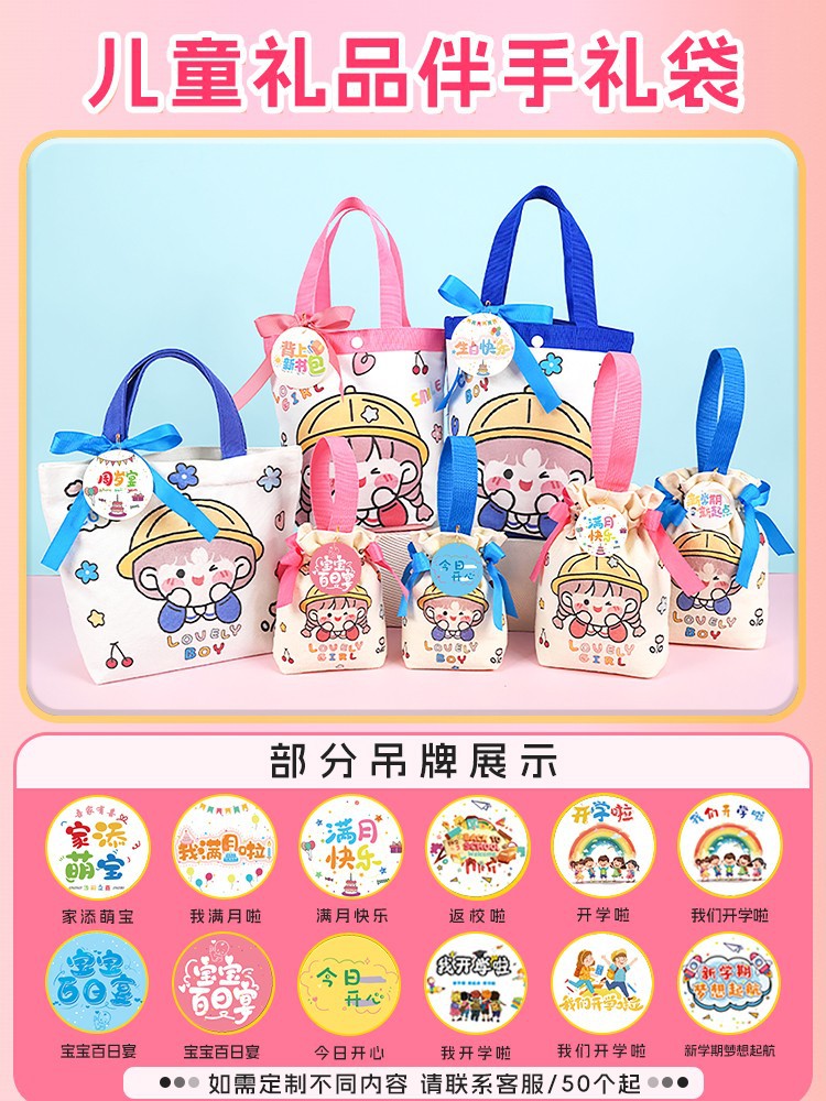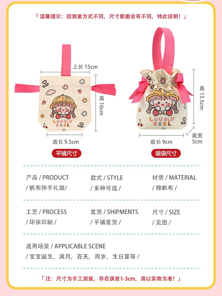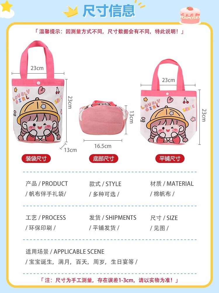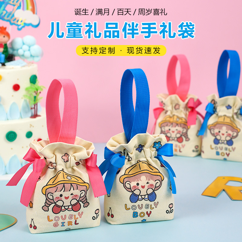 어린이 손 선물 토트 백 생일 보름달 선물 포장 빈 가방 캔버스 선물 가방 유치원