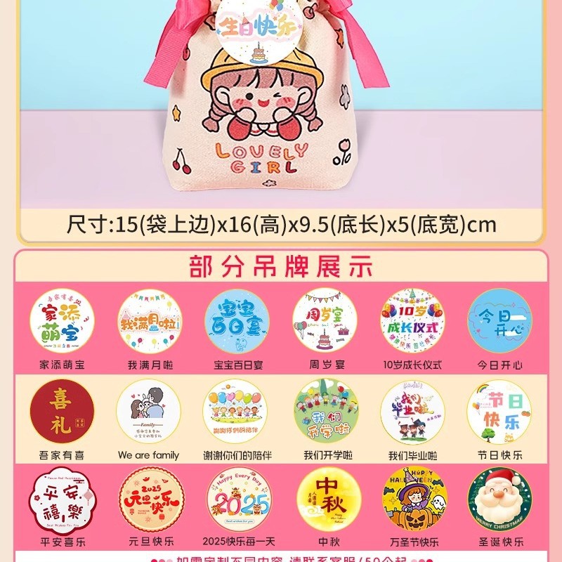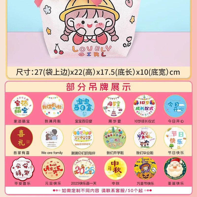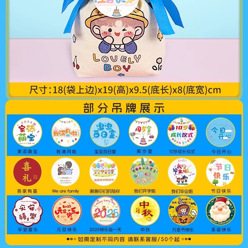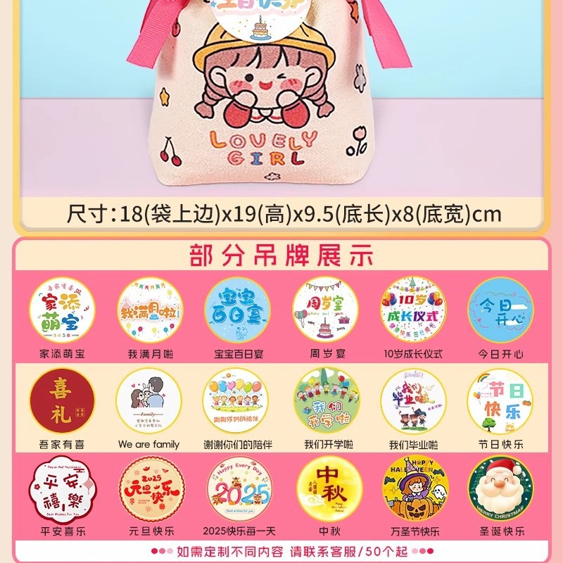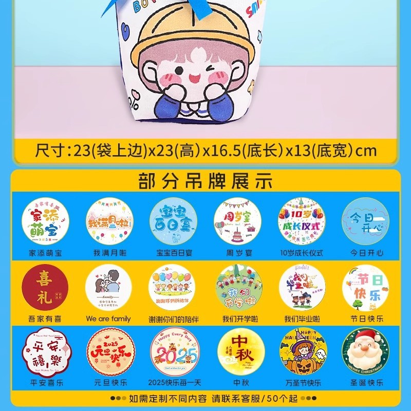 어린이 손 선물 토트 백 생일 보름달 선물 포장 빈 가방 캔버스 선물 가방 유치원