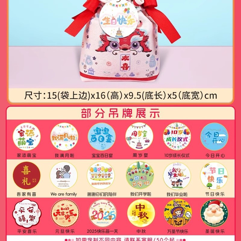 • 빨간 만화 뱀 주머니 + 생일 태그 + 핀