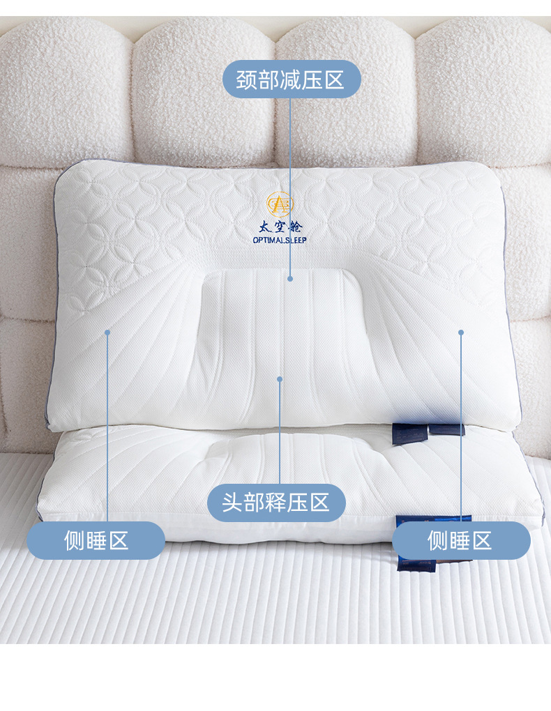 일류 우주 캡슐 목 베개 3D 파티션 라텍스 베개 수면을 돕는 홈 호텔 베개 니트 면 마사지 베개