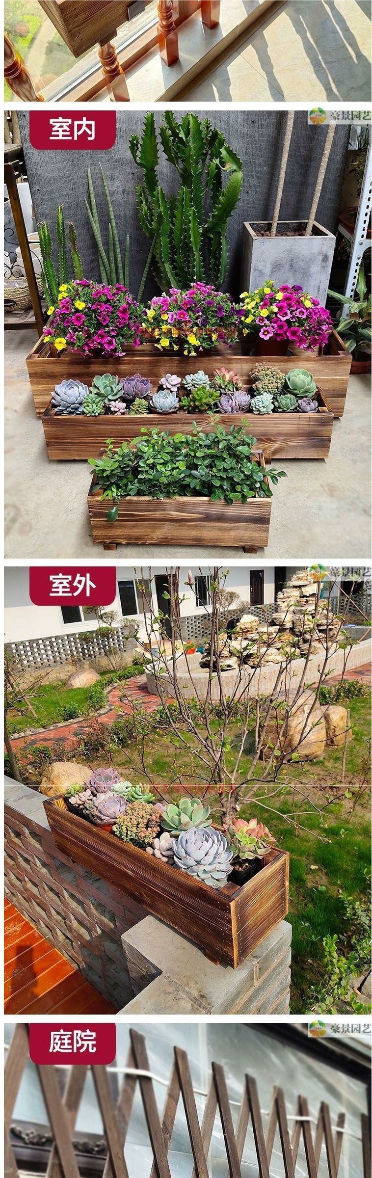 무료 배송 내구성 다육 조합 작은 꽃 냄비 부식 방지 나무 꽃 상자 발코니 직사각형 스트립 심기 상자 통기성스토어 가기