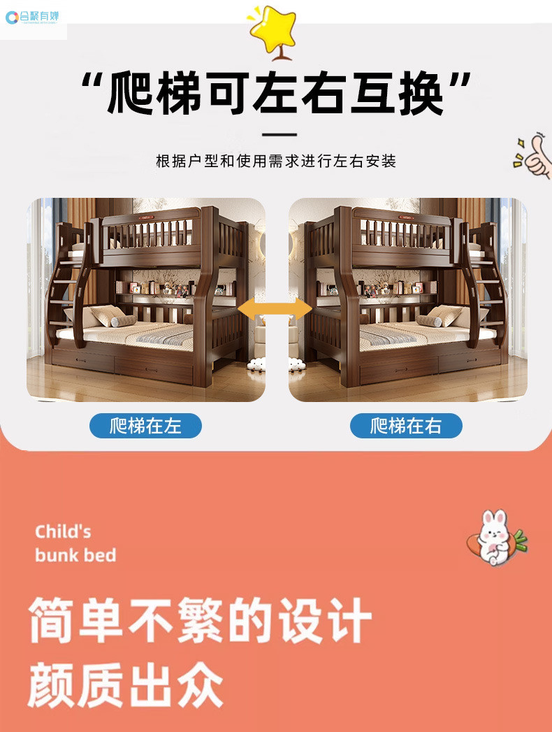 상하층 침대, 소형 가정용 이층 침대, 어린이 침대, 다기능 높낮이 침대, 소형 가정용스토어 가기