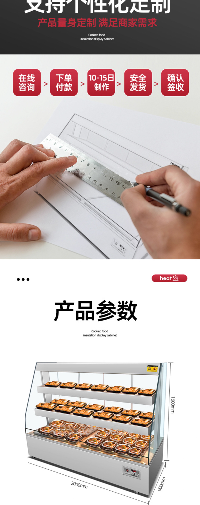 • 2m 가열 및 단열 디스플레이 캐비닛