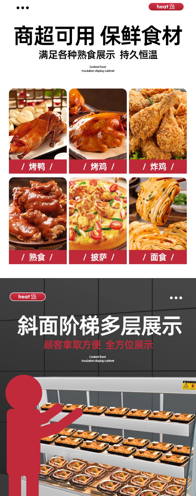 상업용 조리 식품 구운 닭고기와 오리 다층 디스플레이 항온 캐비닛 서양 음식 뜨거운 요리 및 과자 가열 및 보온 디스플레이 캐비닛스토어 가기