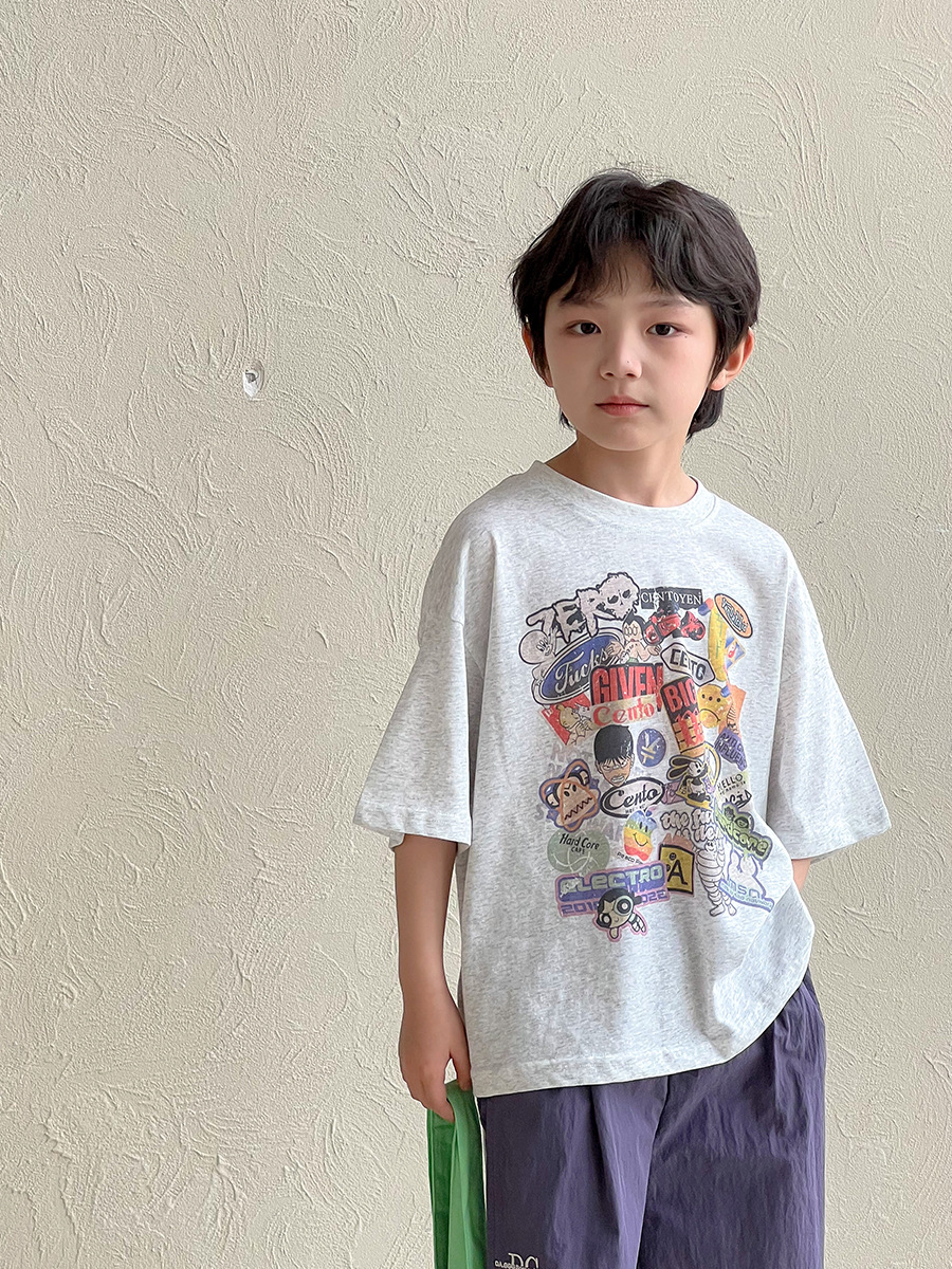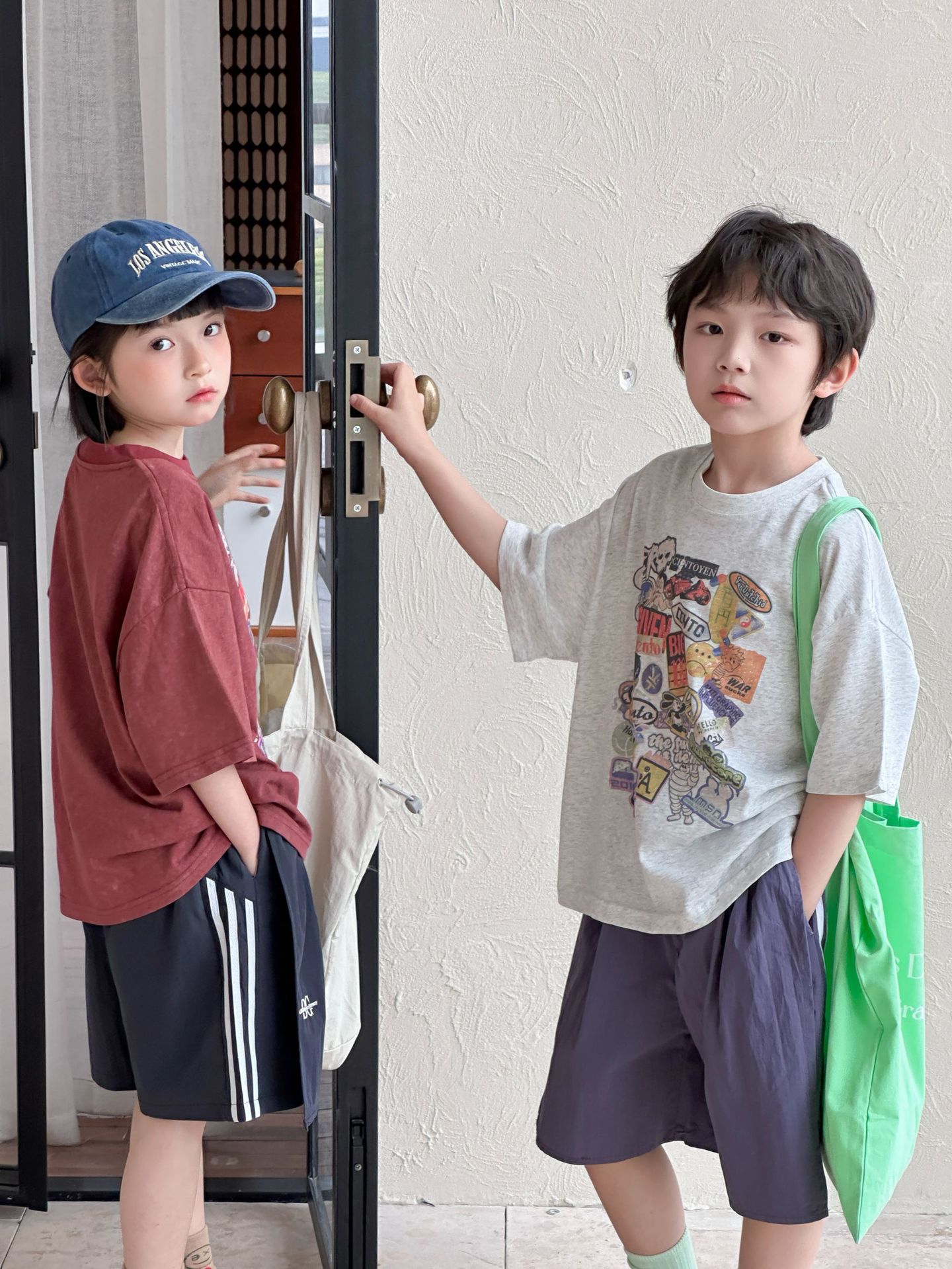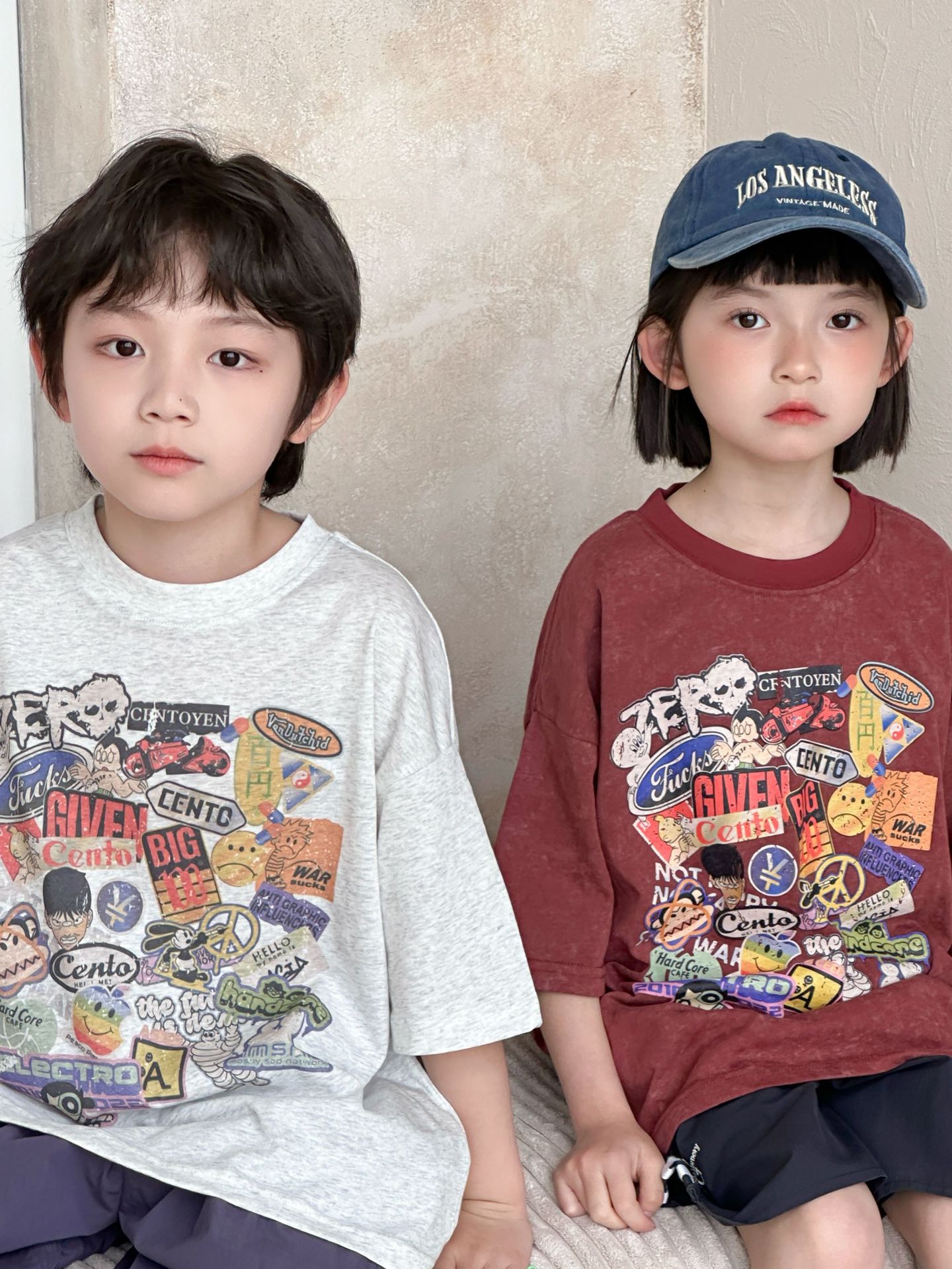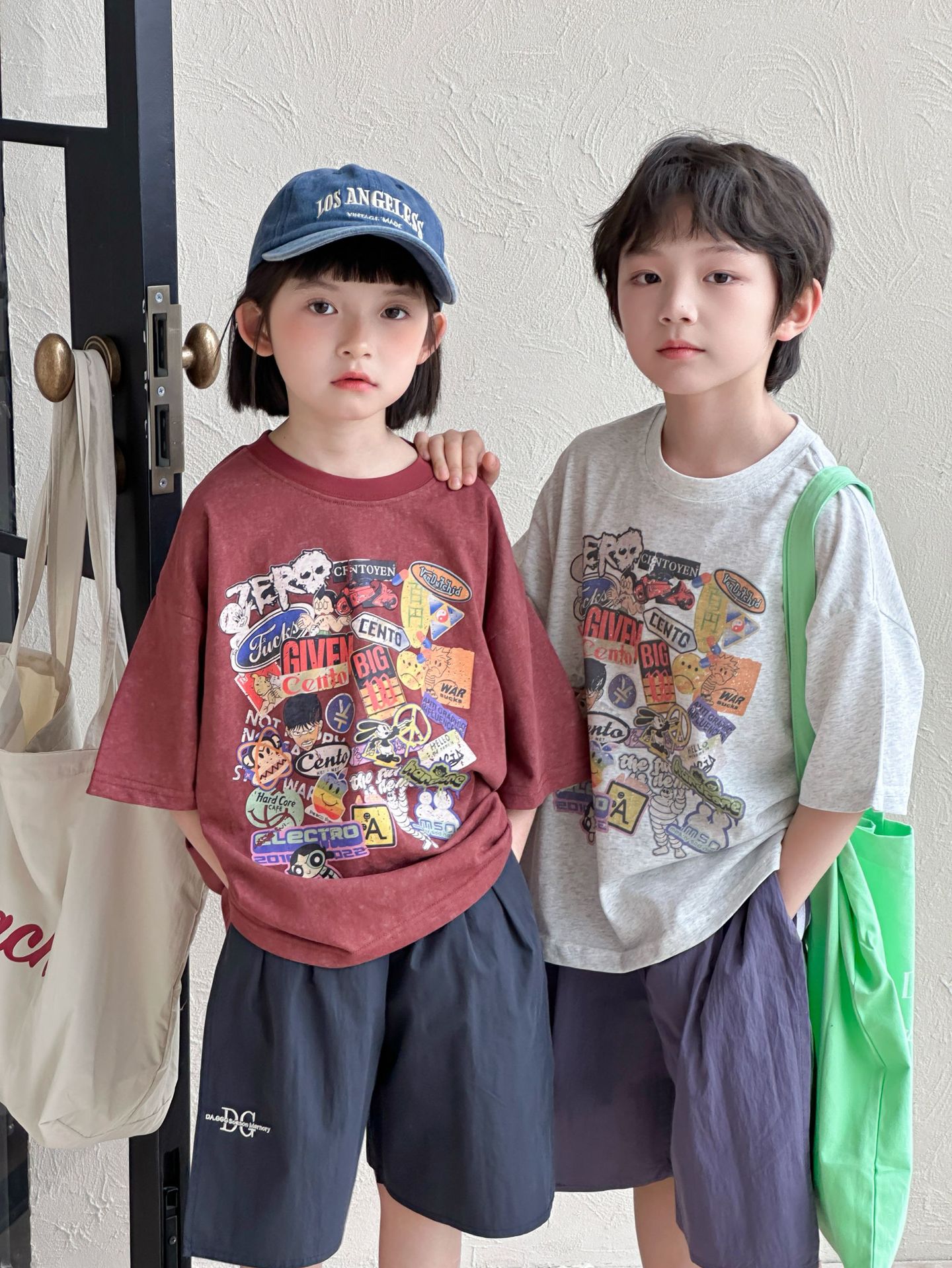 2025 새로운 여름 한국어 버전 어린이 만화 애니메이션 인쇄 반팔 소년과 소녀 눈송이 면화 가볍고 통기성 티셔츠스토어 가기