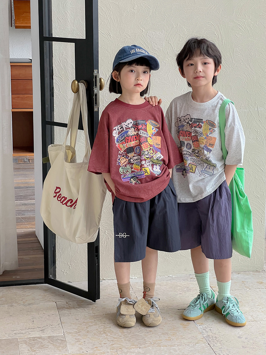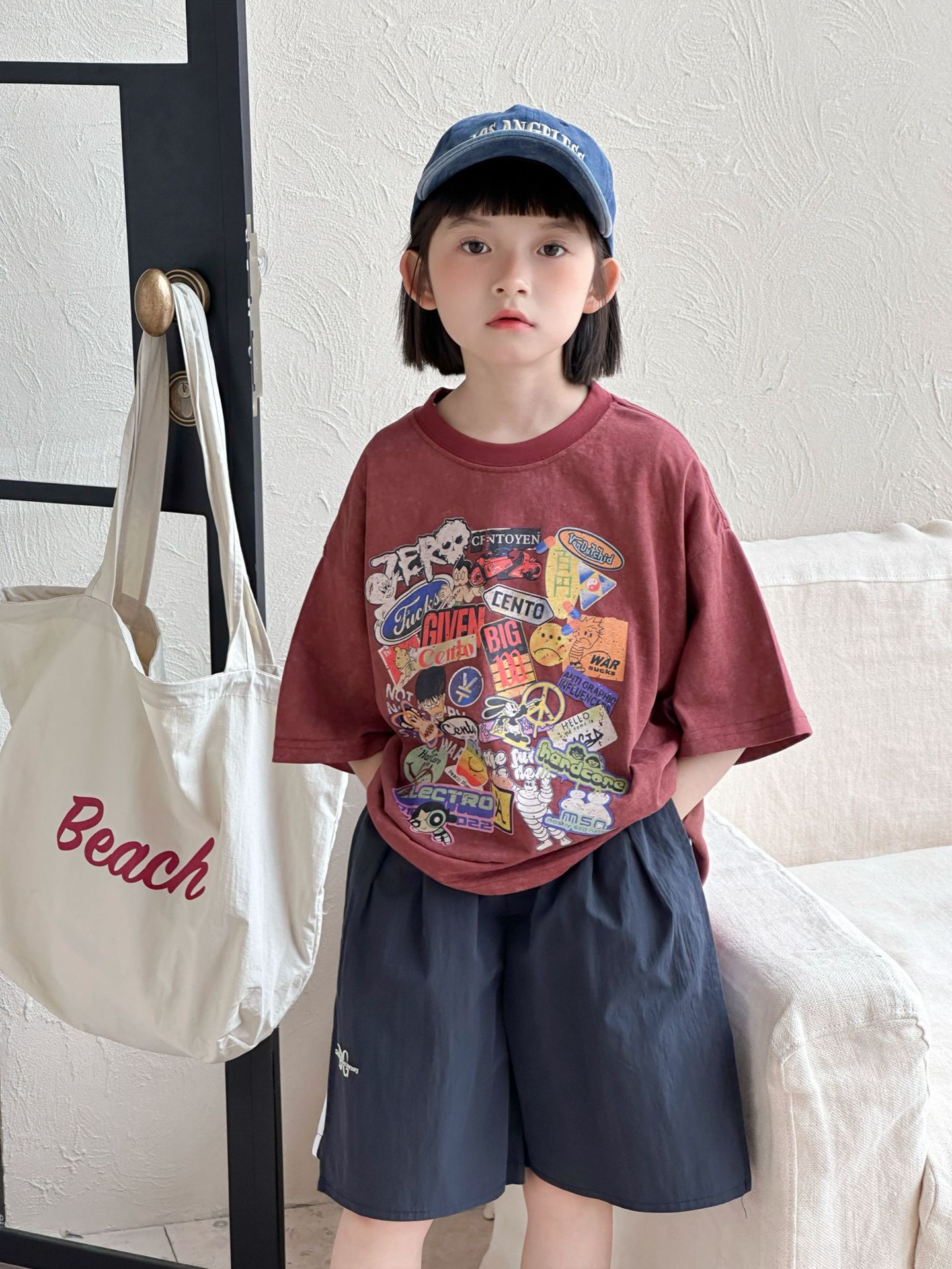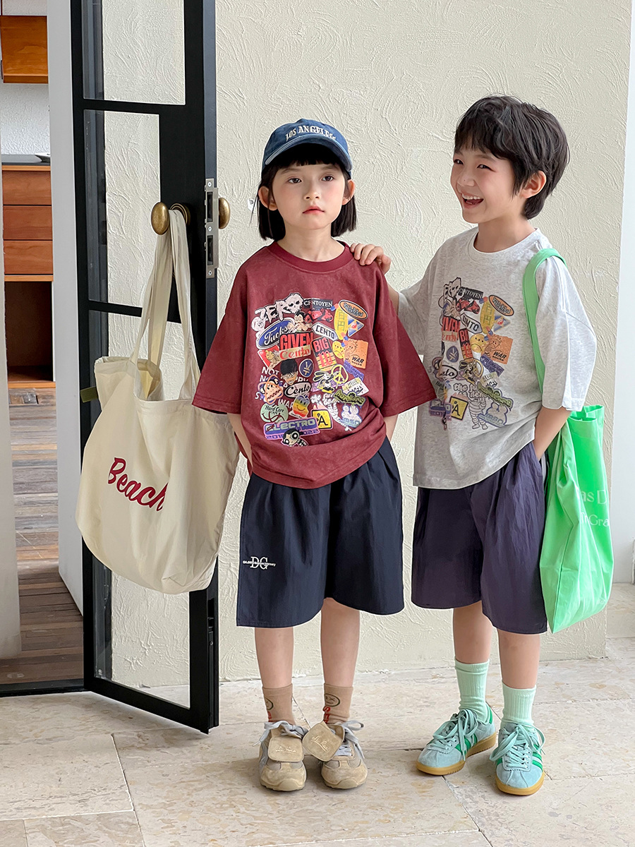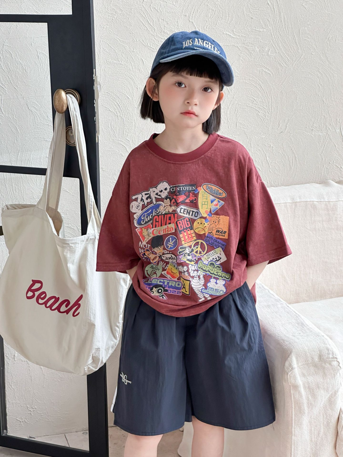 2025 새로운 여름 한국어 버전 어린이 만화 애니메이션 인쇄 반팔 소년과 소녀 눈송이 면화 가볍고 통기성 티셔츠스토어 가기
