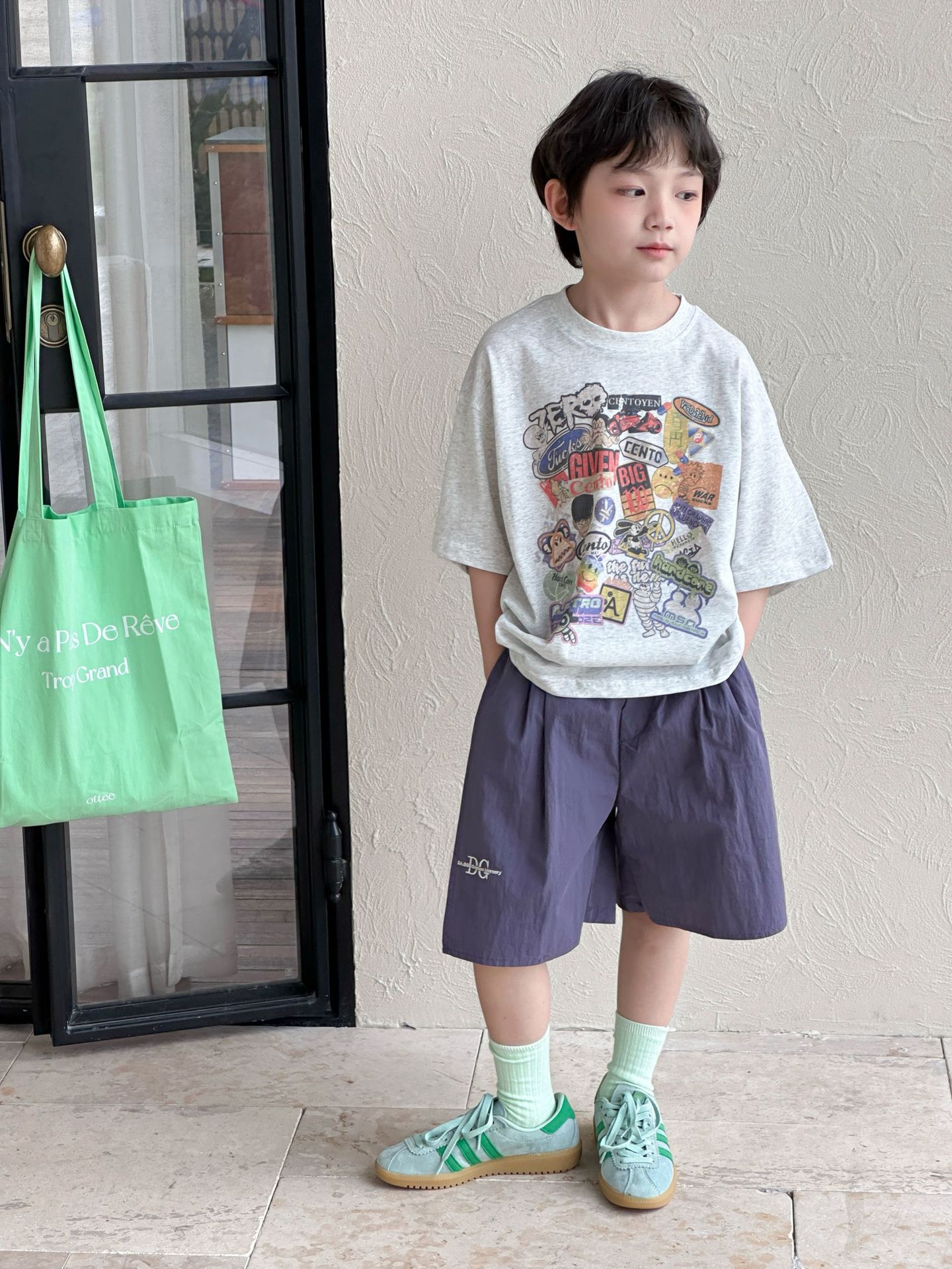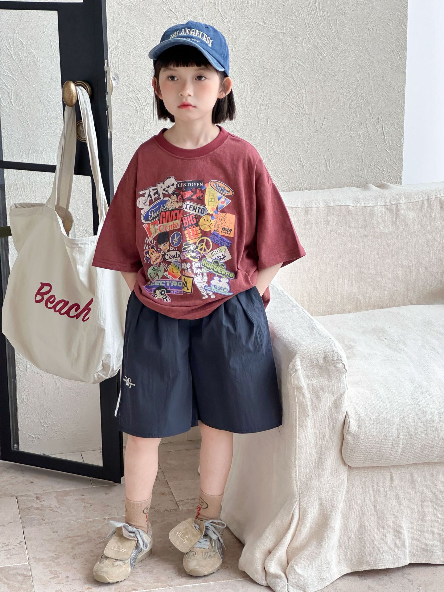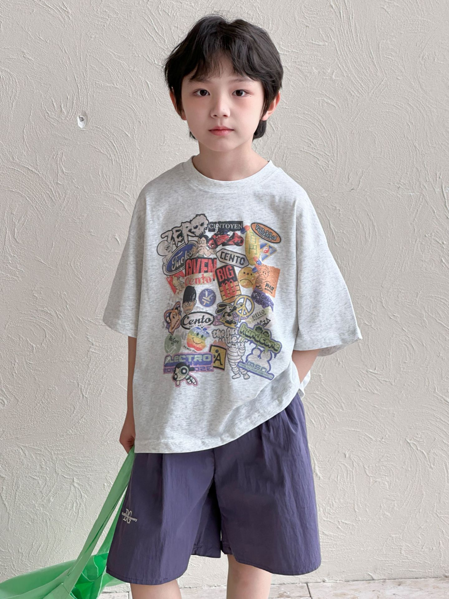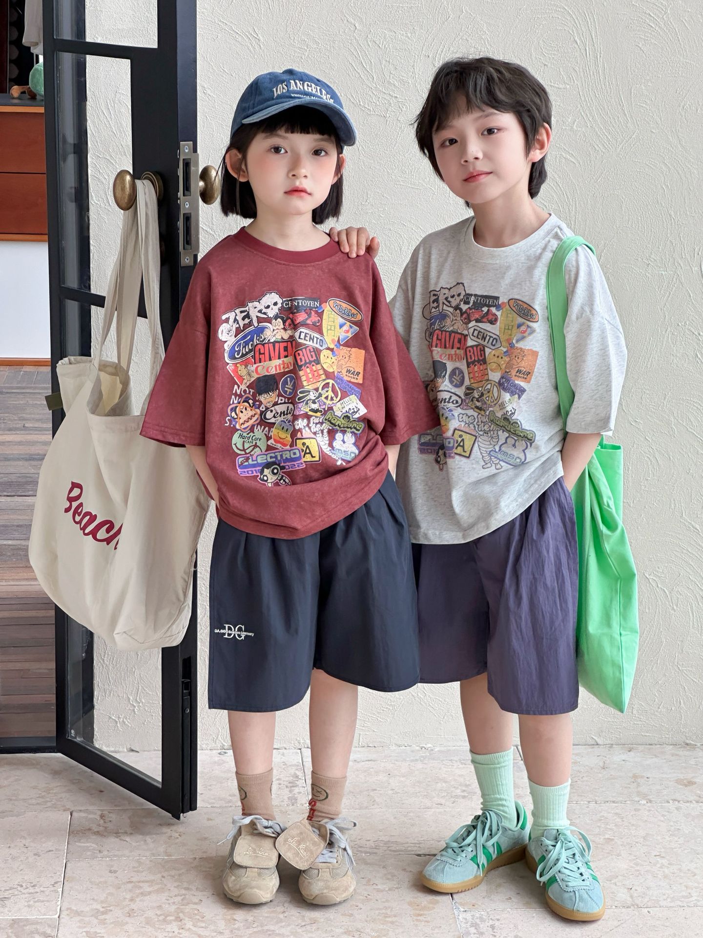 2025 새로운 여름 한국어 버전 어린이 만화 애니메이션 인쇄 반팔 소년과 소녀 눈송이 면화 가볍고 통기성 티셔츠스토어 가기