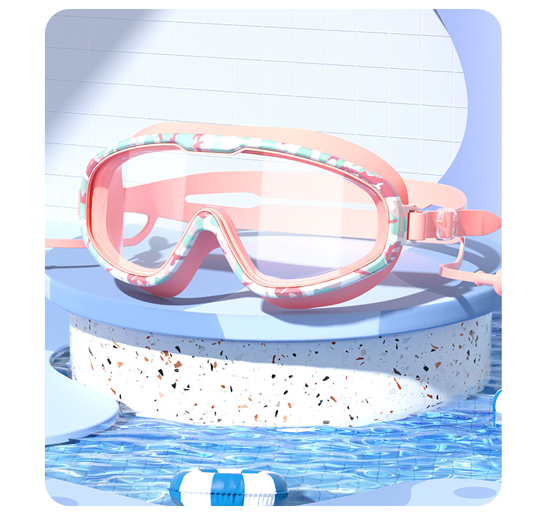 어린이 수영 고글 방수 및 안개 방지 HD 소년과 소녀 대형 프레임 수영 및 다이빙 안경 수영 모자 세트 전문 장비스토어 가기