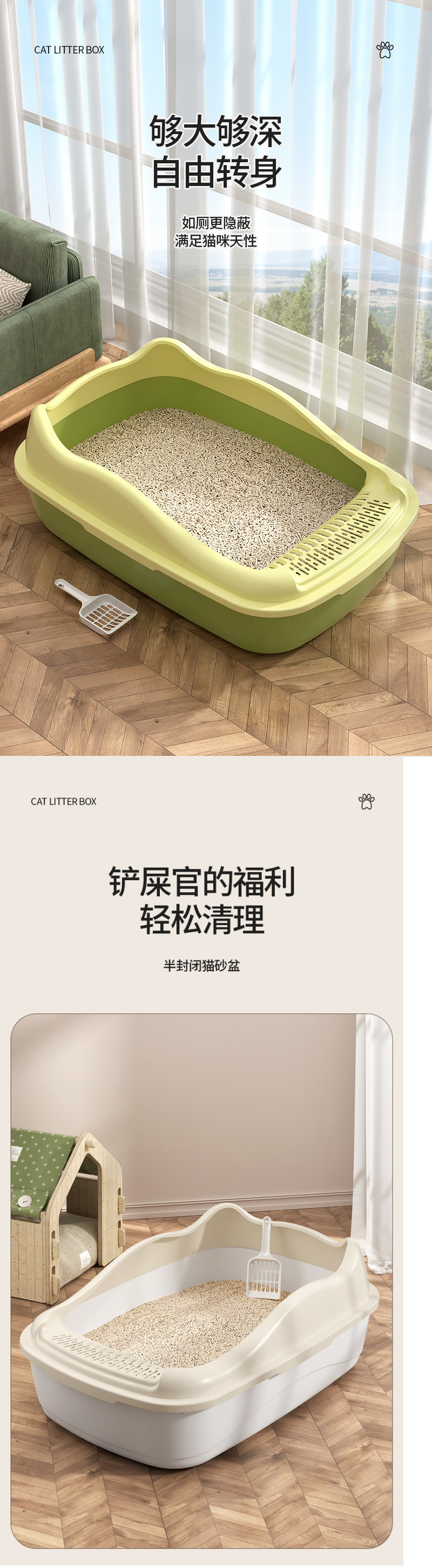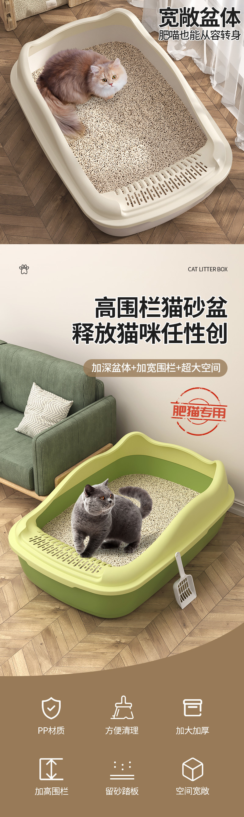 반밀폐형 저렴한 고양이 쓰레기통 초대형 두꺼운 물 튀김 방지 고양이 쓰레기통 개방형 고양이 화장실
