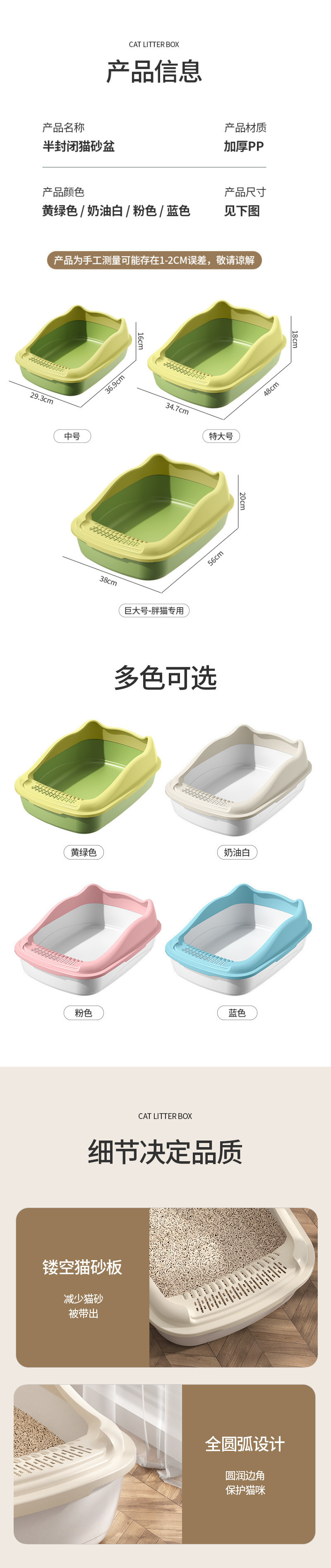반밀폐형 저렴한 고양이 쓰레기통 초대형 두꺼운 물 튀김 방지 고양이 쓰레기통 개방형 고양이 화장실스토어 가기