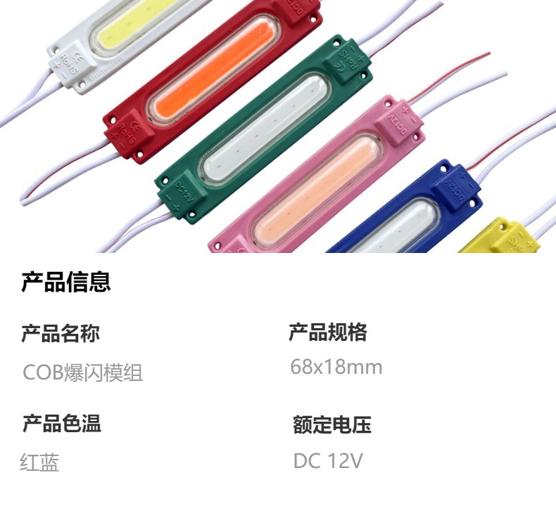 공장 직접 판매 고휘도 COB 플래시 모듈 12V 방수 오토바이 경고등 트럭 미등 자동차 장식 조명