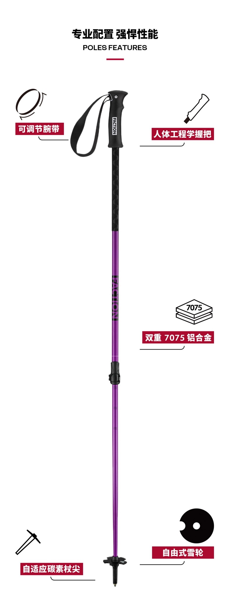 Hotmai 더블 보드 등산 스키 스틱 조정 가능한 스노우 휠 경량 휴대용 알루미늄 합금 텔레스코픽 스키 스틱스토어 가기