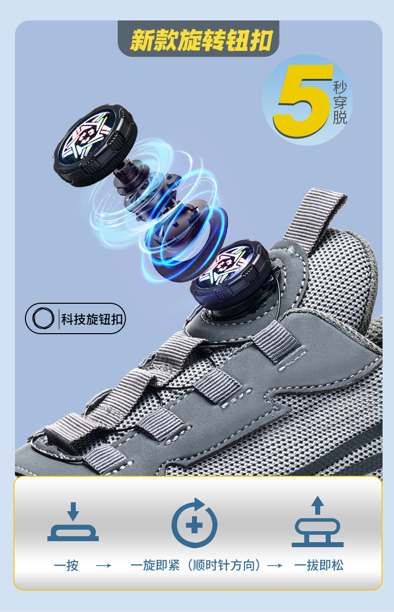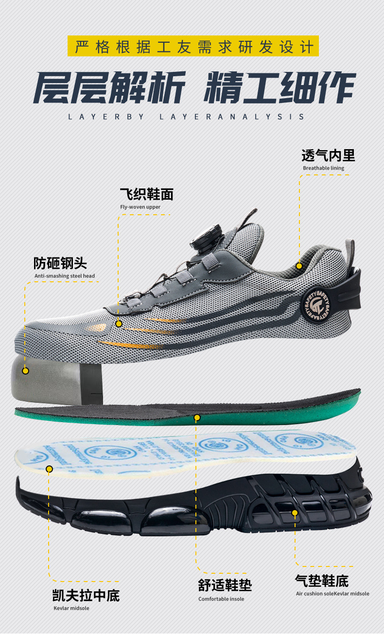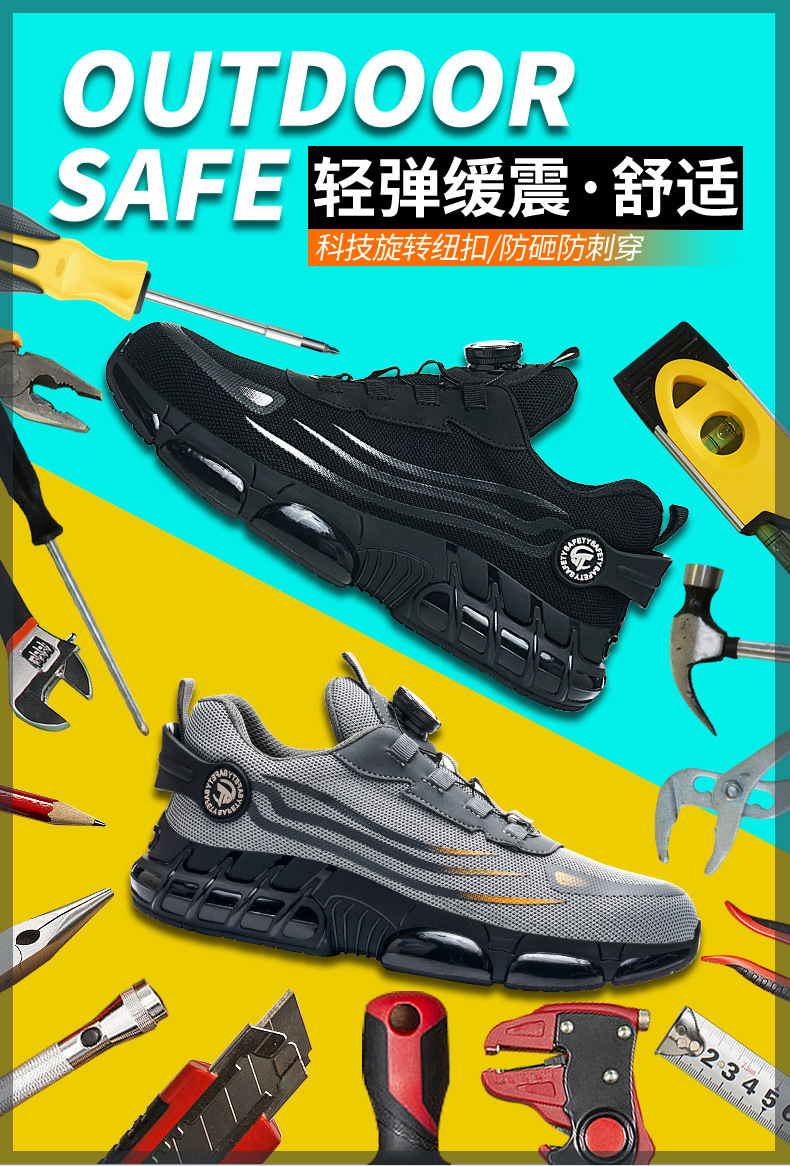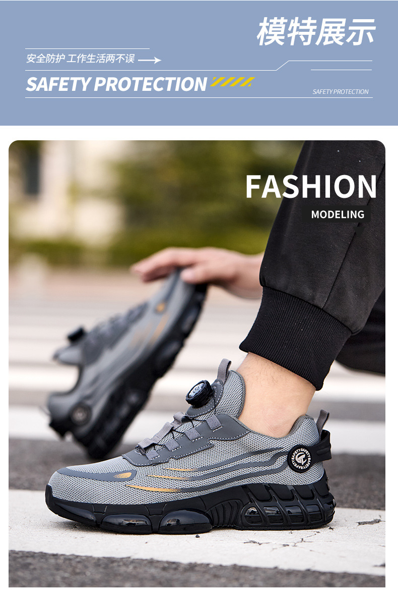남성용 노동 보호 신발, 충격 방지 및 펑크 방지 기술 버튼 건설 내마모성, 경량, 통기성, 안전 보호 작업 신발, 국경 간스토어 가기