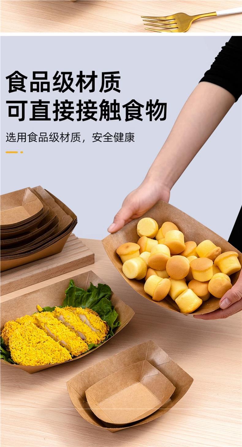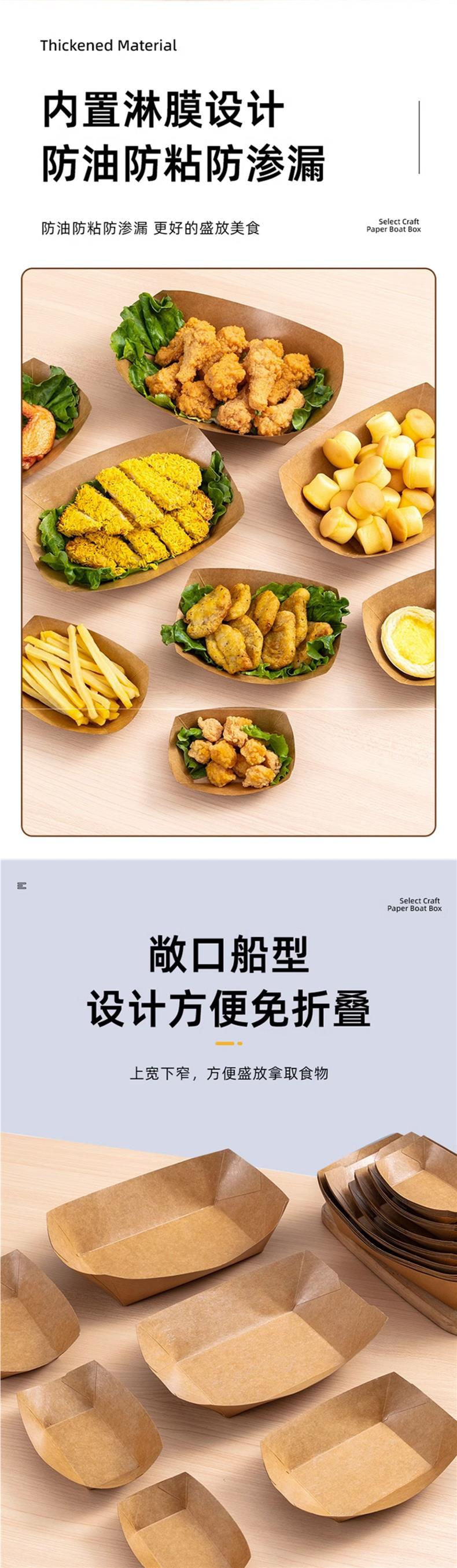 일회용 크래프트 종이 보트 상자 상업용 스낵 감자 튀김 꼬치 바베큐 오픈 트레이 튀김 치킨 보트 모양 포장 상자스토어 가기