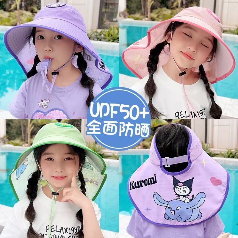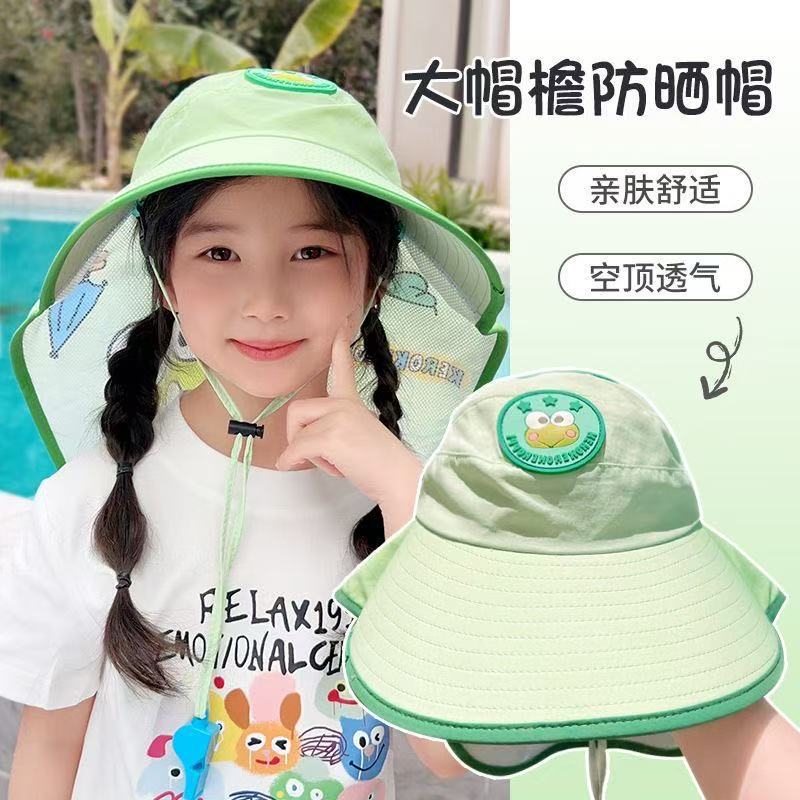 어린이용 숄형 자외선 차단 모자, 큰 챙, 2025년 신형, 접이식 아기용 햇빛 가리개 어부 모자, 여아용 태양 모자