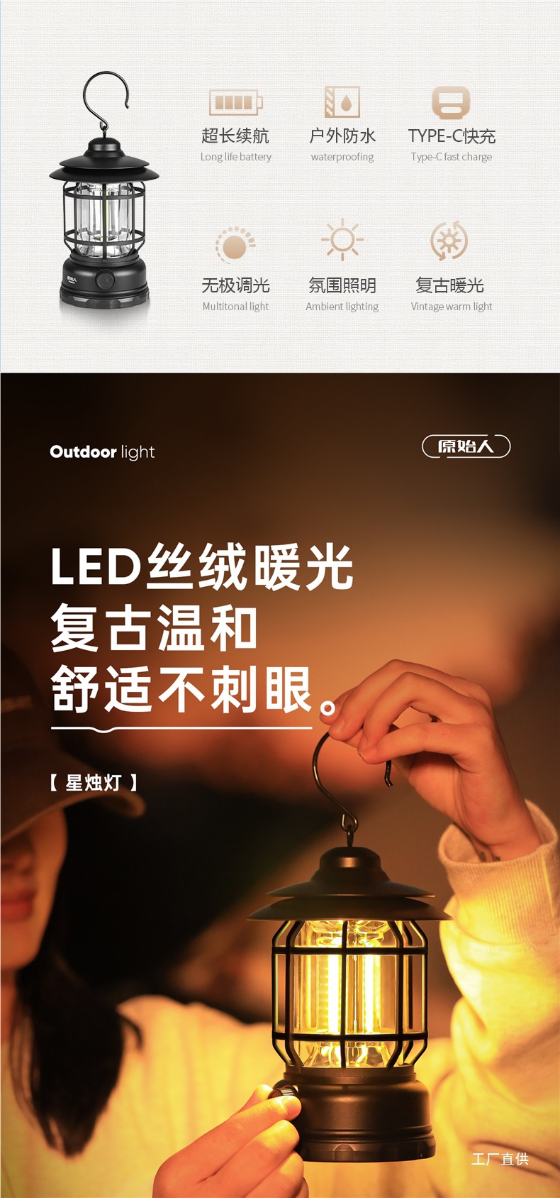 원시 캠핑 램프, 야외 조명, 말 랜턴, 매우 긴 배터리 수명, 캠핑 램프, 충전식 분위기 조명, Tongou를 위한 야외 캠핑 램프