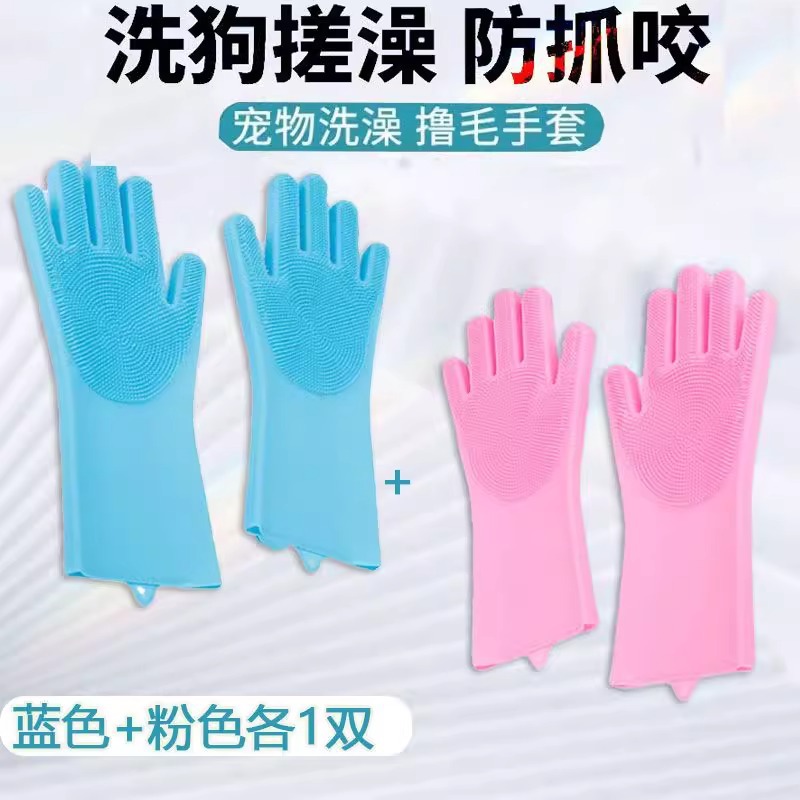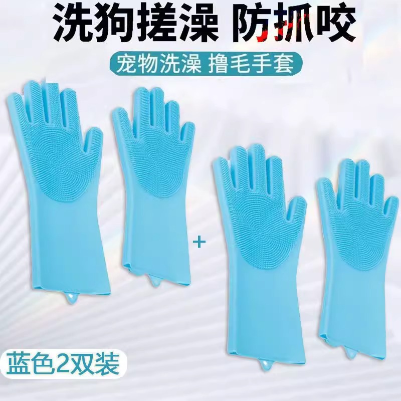 • 개와 고양이를 위한 범용 물림 방지 목욕 장갑 [두꺼운 파란색] 2쌍
