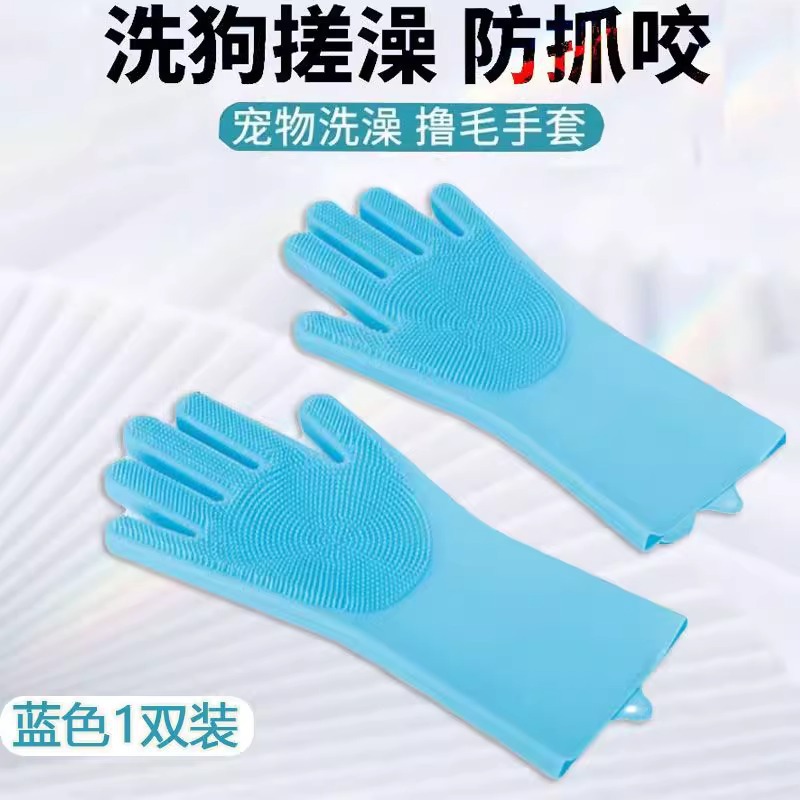 • 개와 고양이를 위한 범용 물림 방지 목욕 장갑 [두꺼운 파란색] 1쌍